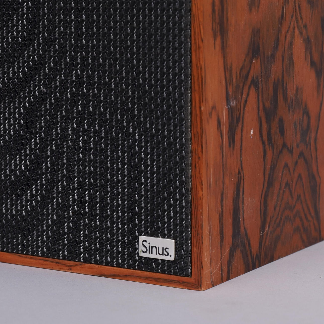 Sinus modell 1, svensktillverkad högtalare med kabinett i palisanderfanér.