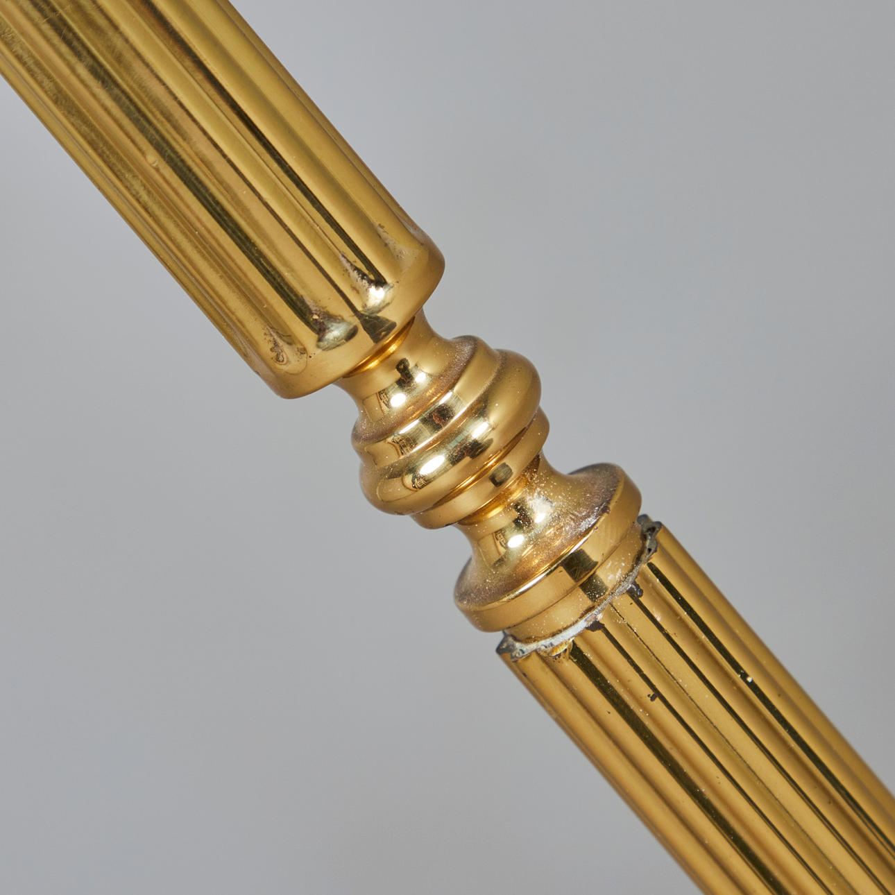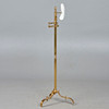 Stummer Viener/Kappställ, mässing, trä. Mässingsklädhängare med trebensböjd stativ, räfflad axel och en horisontell hylla med en monterad vitlackerad trähängare, H.117cm, W.45cm, D.38cm.