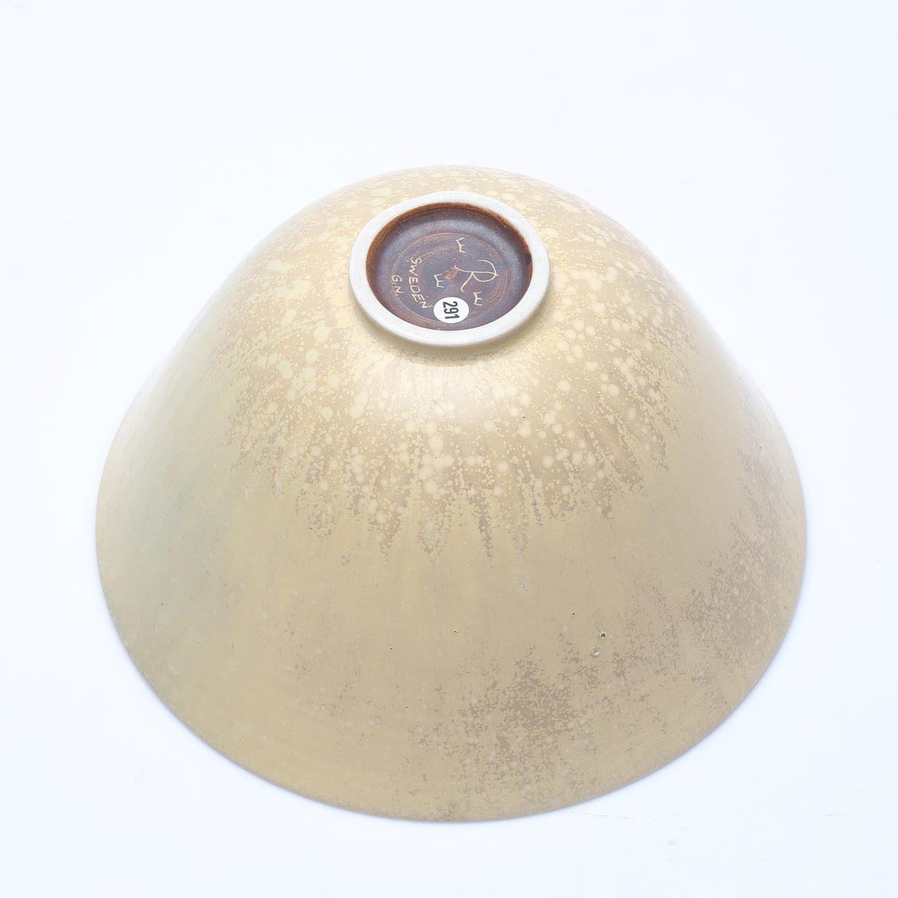 Äggskalsglasyr, signerad R Sweden, GN. Höjd ca 10 cm diameter ca 18 cm. Nr 291.