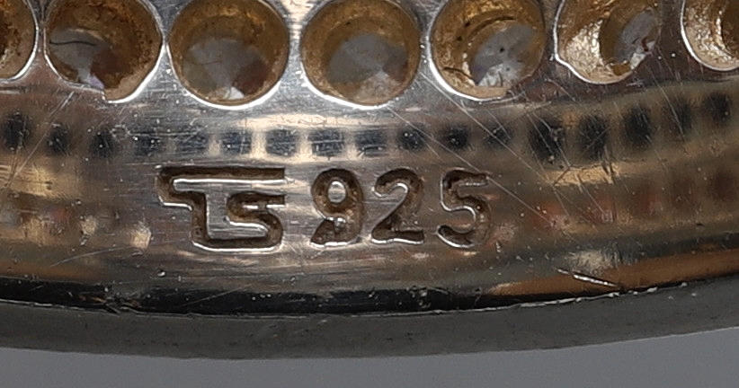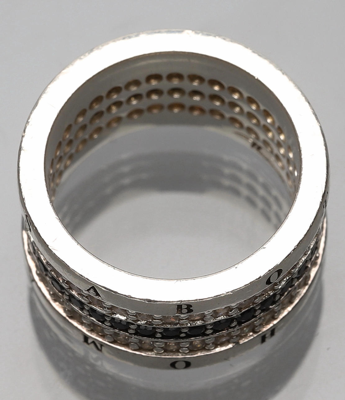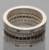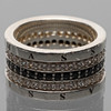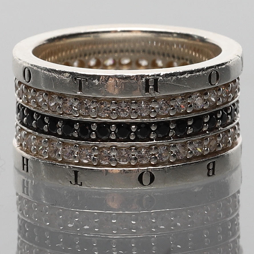 Band i sterlingsilver, två rader vita cubic zirkonia och en rad svarta cubic zirkonia.