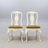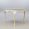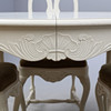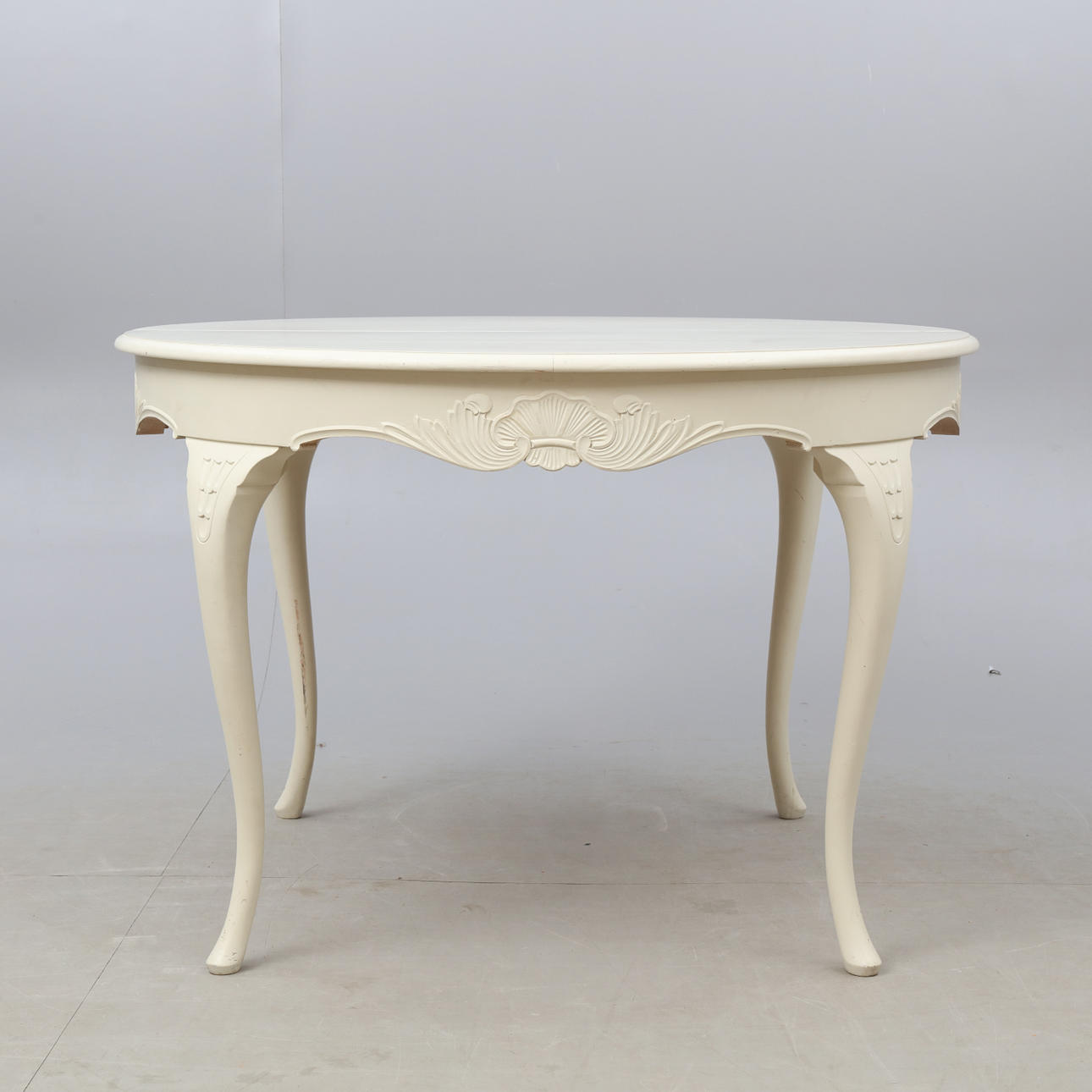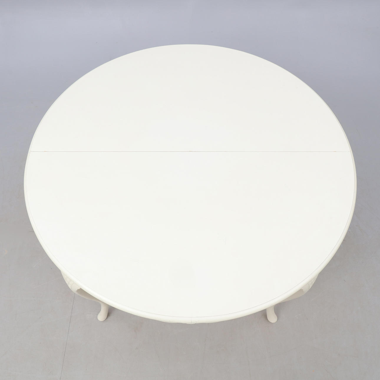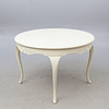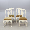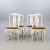 Bord. Höjd ca 75 cm. Diameter ca 108 cm. 4 Stolar. Höjd ca 90 cm Bredd ca 45 cm Djup ca 38 cm.