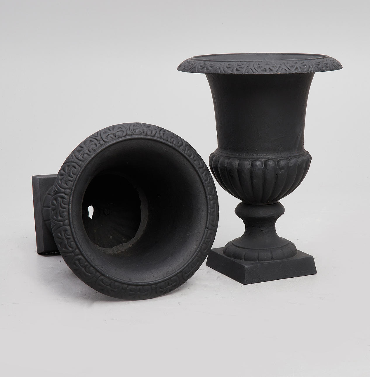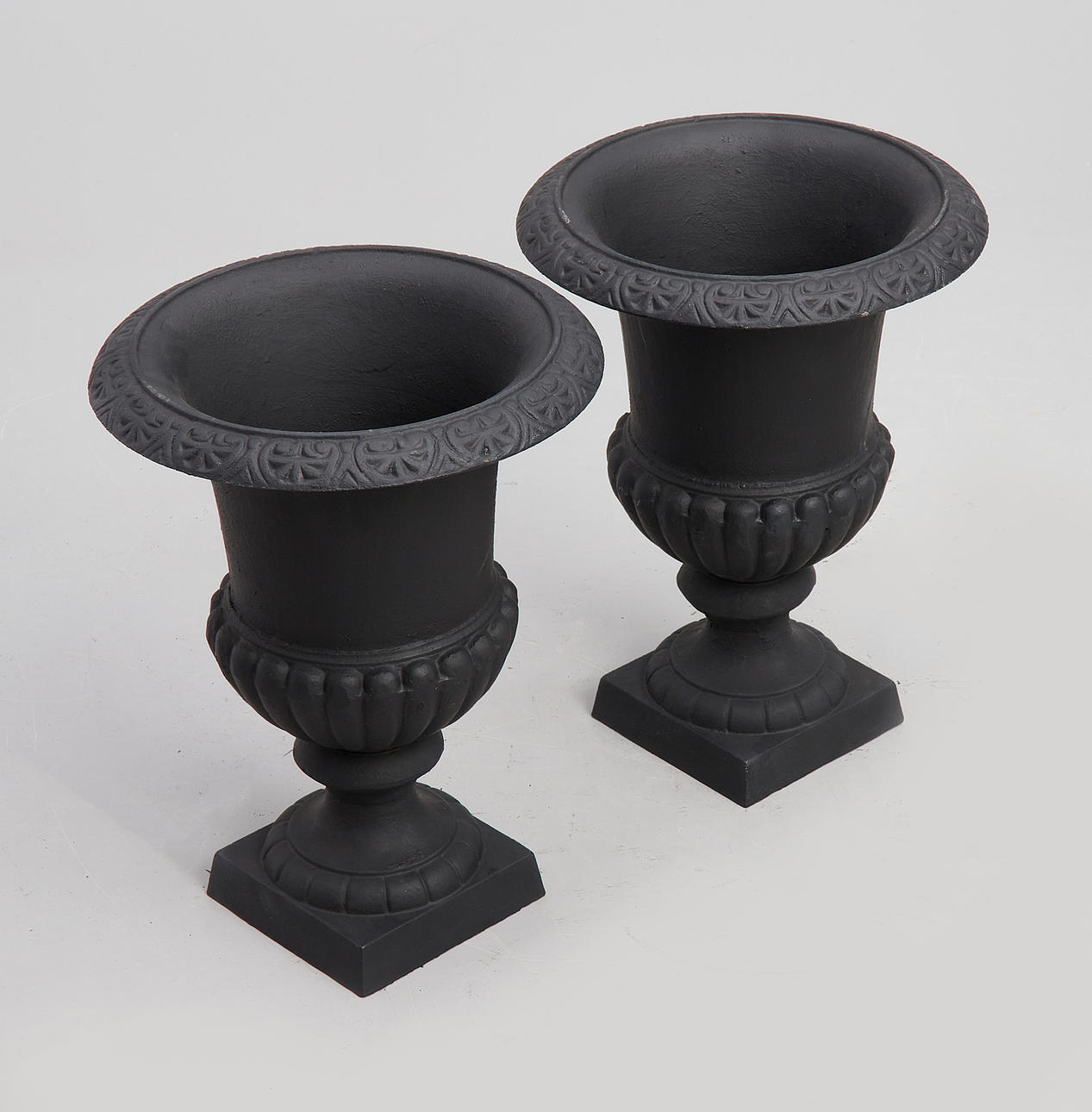 TRÄDGÅRDSURNOR, 1 par, gjutjärn.