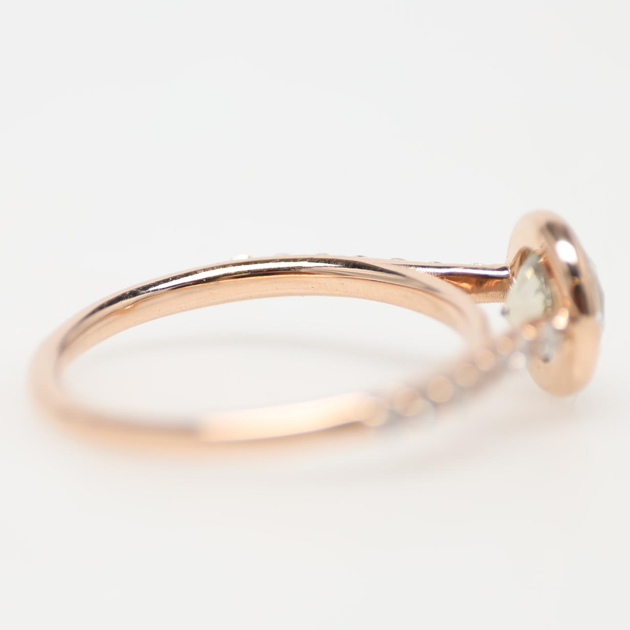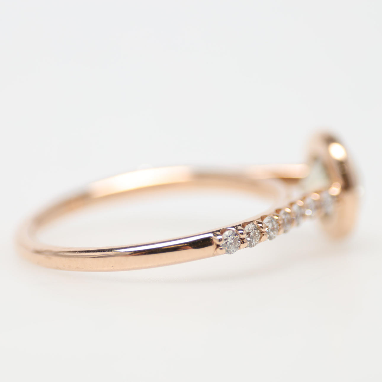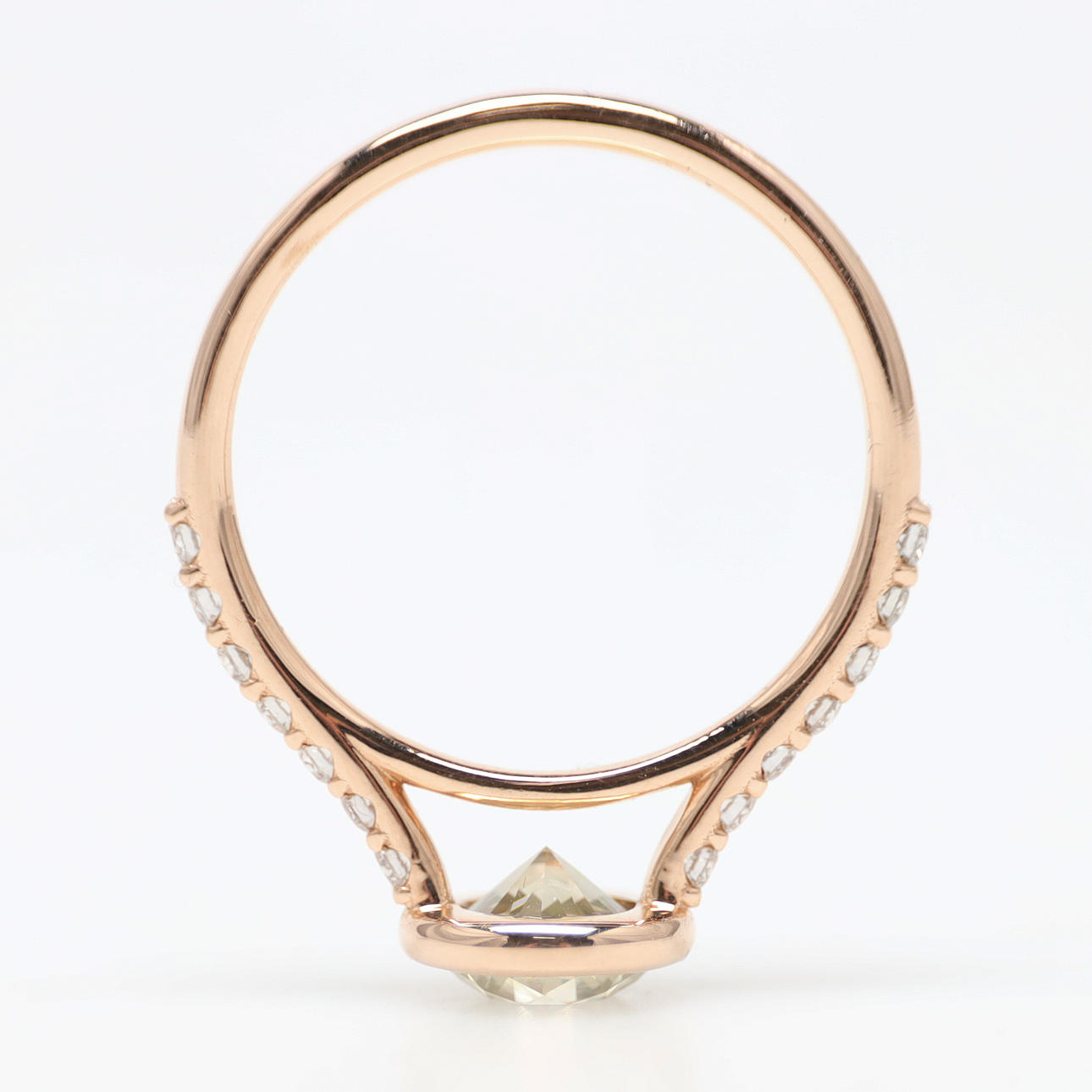 På skenan 14 infattade brilliantslipade diamanter totalt 0,23 ct. F-H, VS!-SI1.