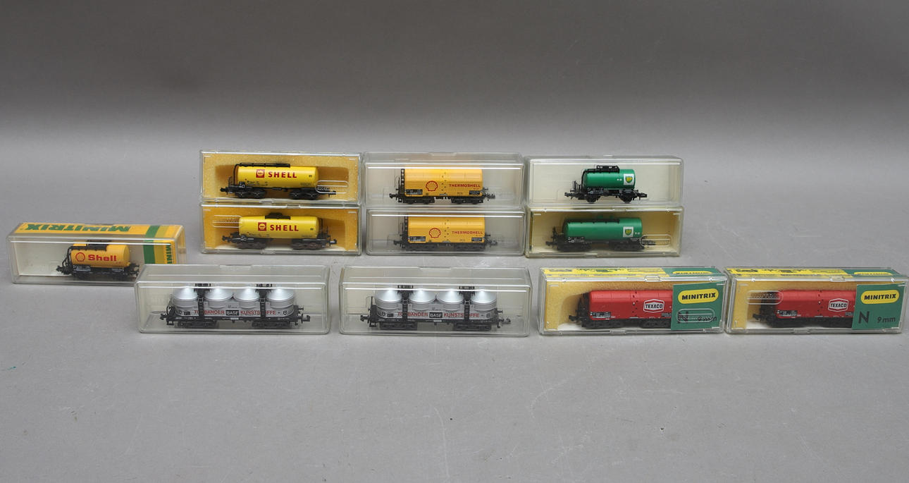 MODELLTÅG, 11 delar, tankvagnar, Minitrix.