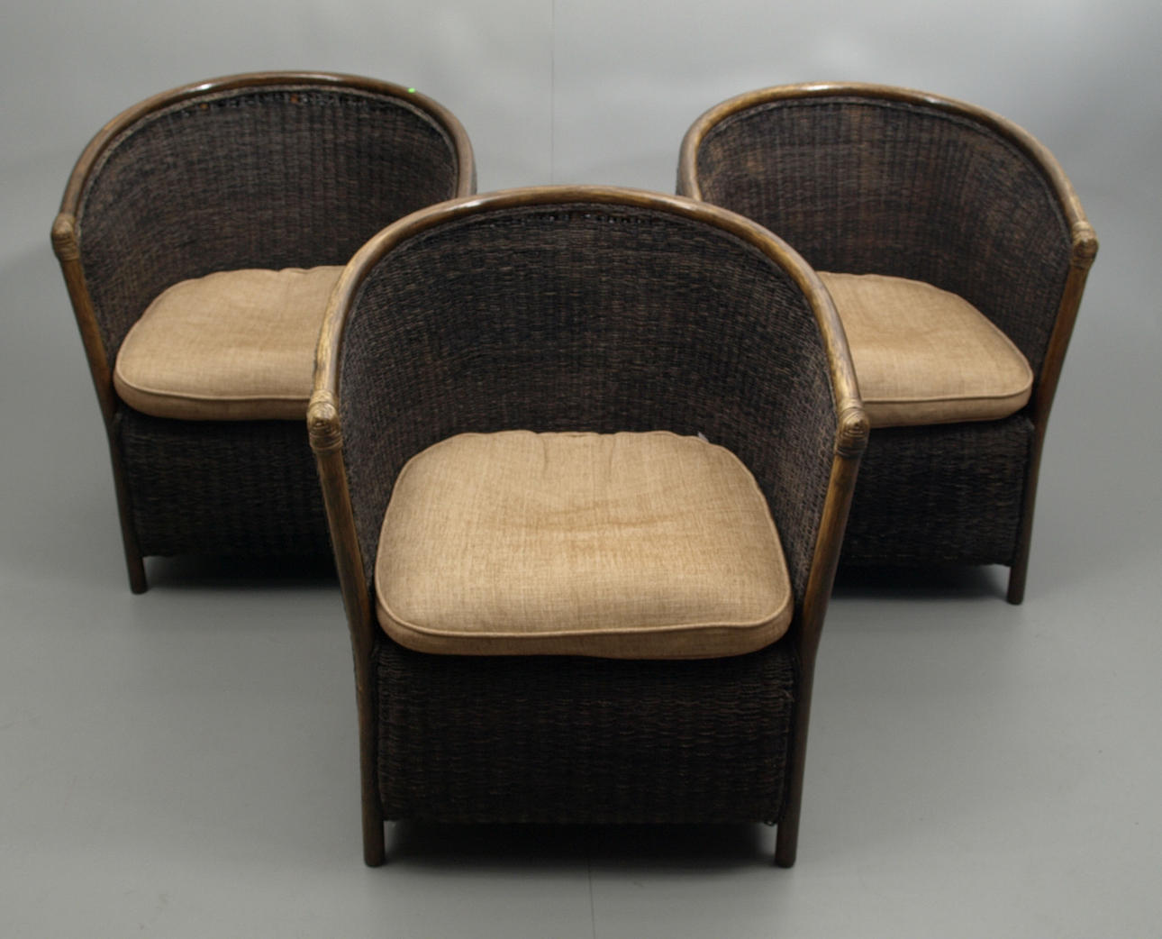 FÅTÖLJER, 3 stycken, flätade, 2000-tal.