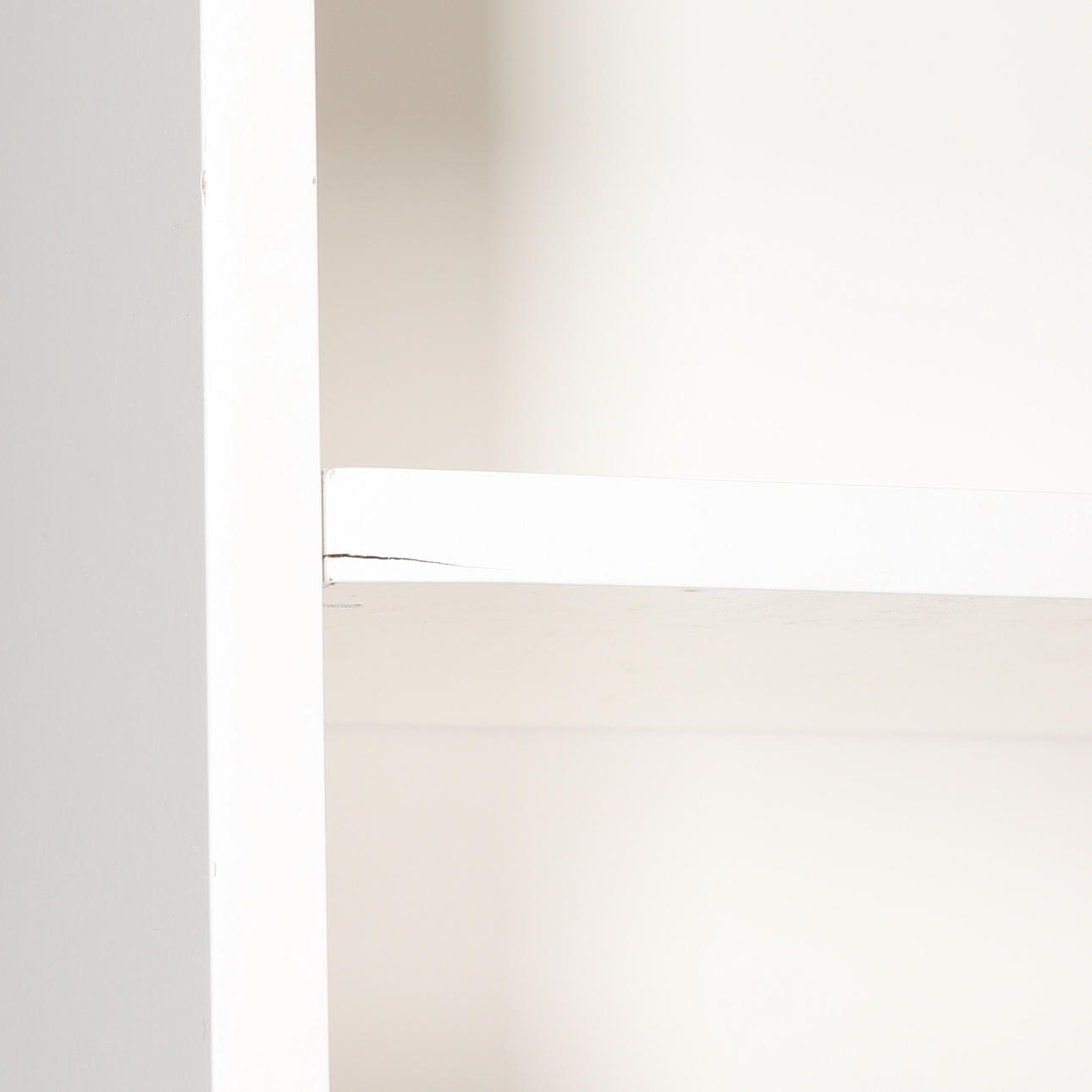 Bruksslitage, märken samt färgbotfall, ett hyllplan med mindre spricka.