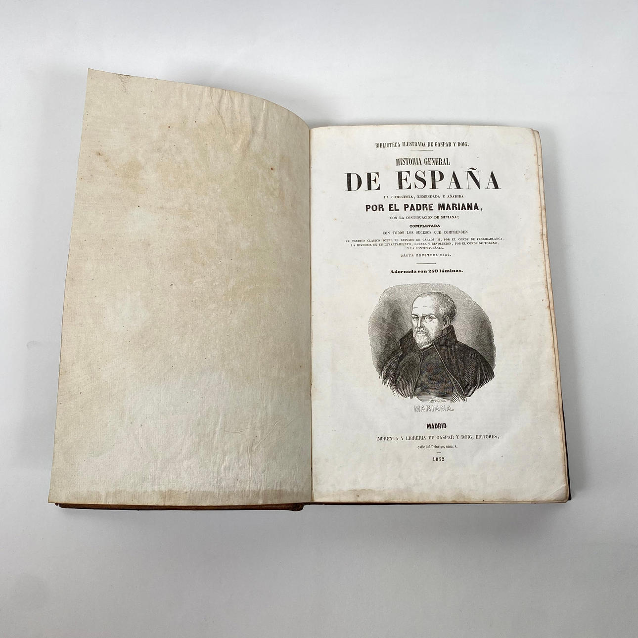 Spaniens historia, den sammansatta, ändrad och tillagd av fader Mariana. Prydd med 250 ark. Madrid, 1852, Tryck och bokhandel av Gaspar och Roig Editories.