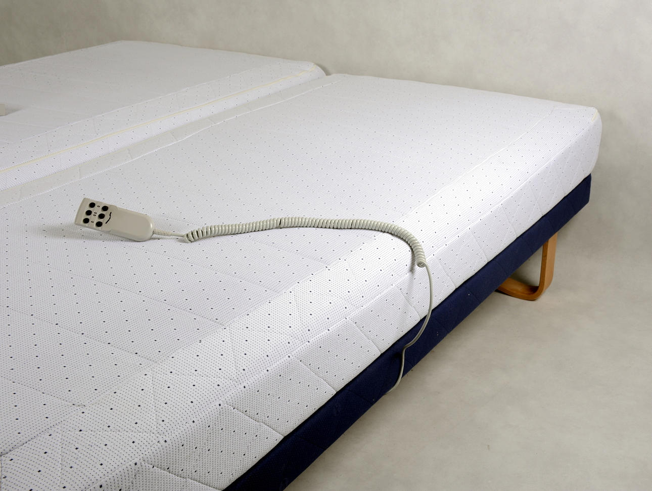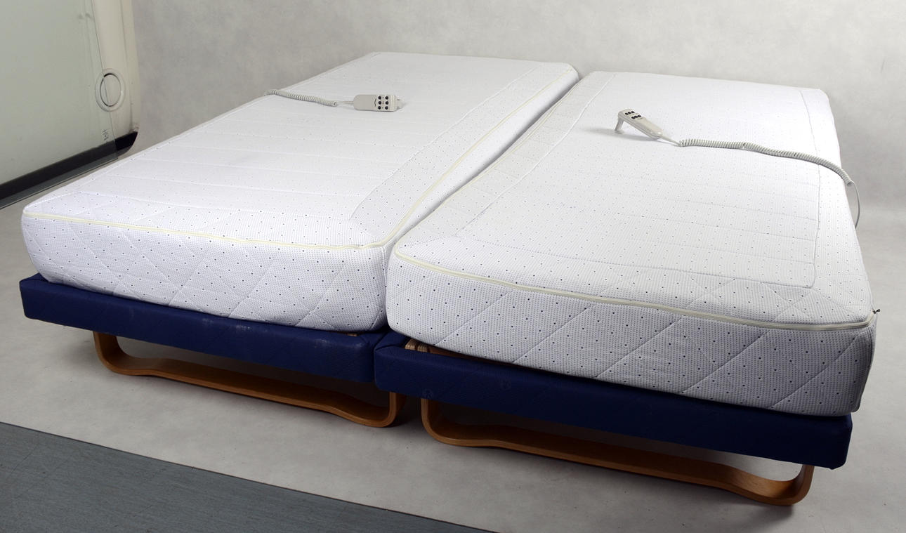 Två motordrivna enkelsängar 90x200 cm, tempurmadrass liknande.