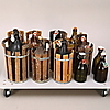 Olika bryggerier, svagdricka, i träkorgar, höjd 30-53 cm.