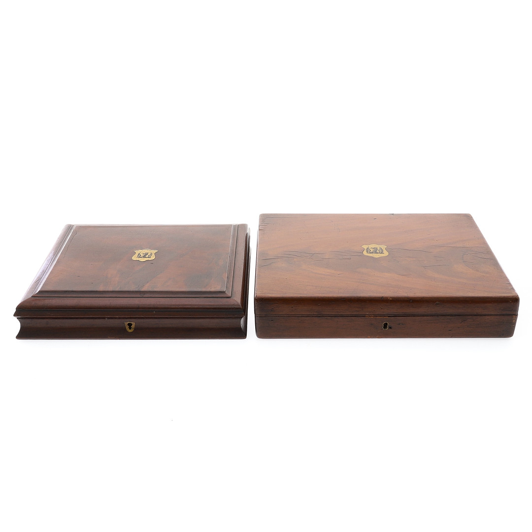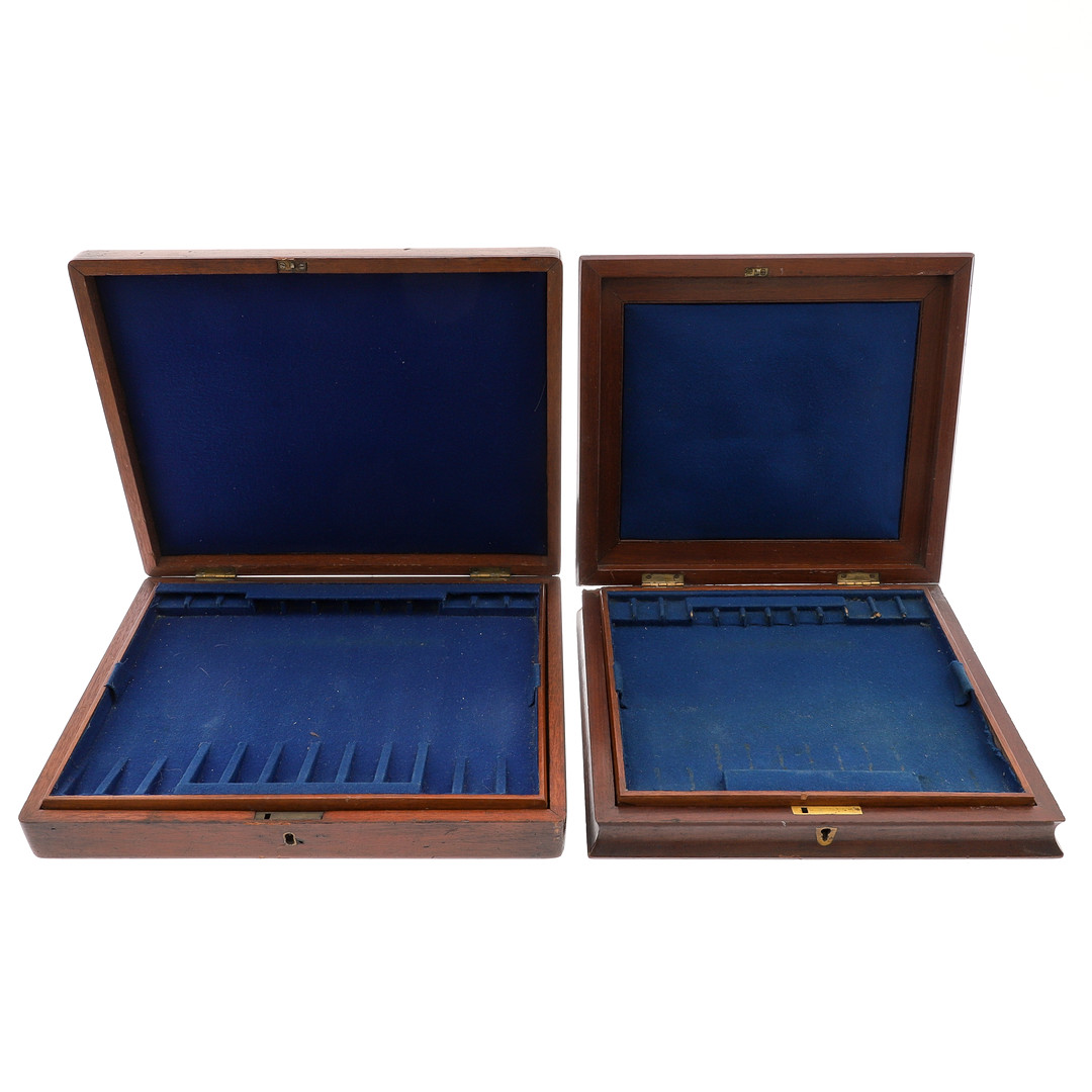 2273893. TVÅ VIKTORIANSKA MAHOGNY BESTICK OCH BESTICK LÅDOR.