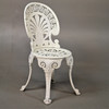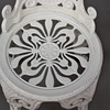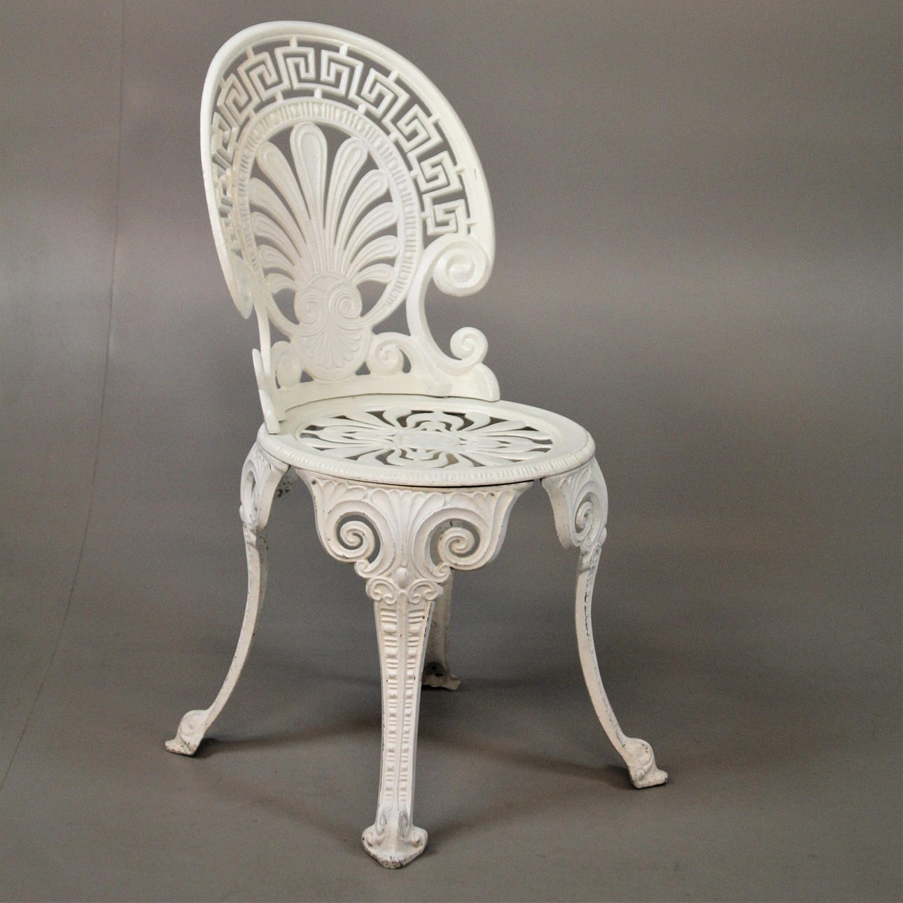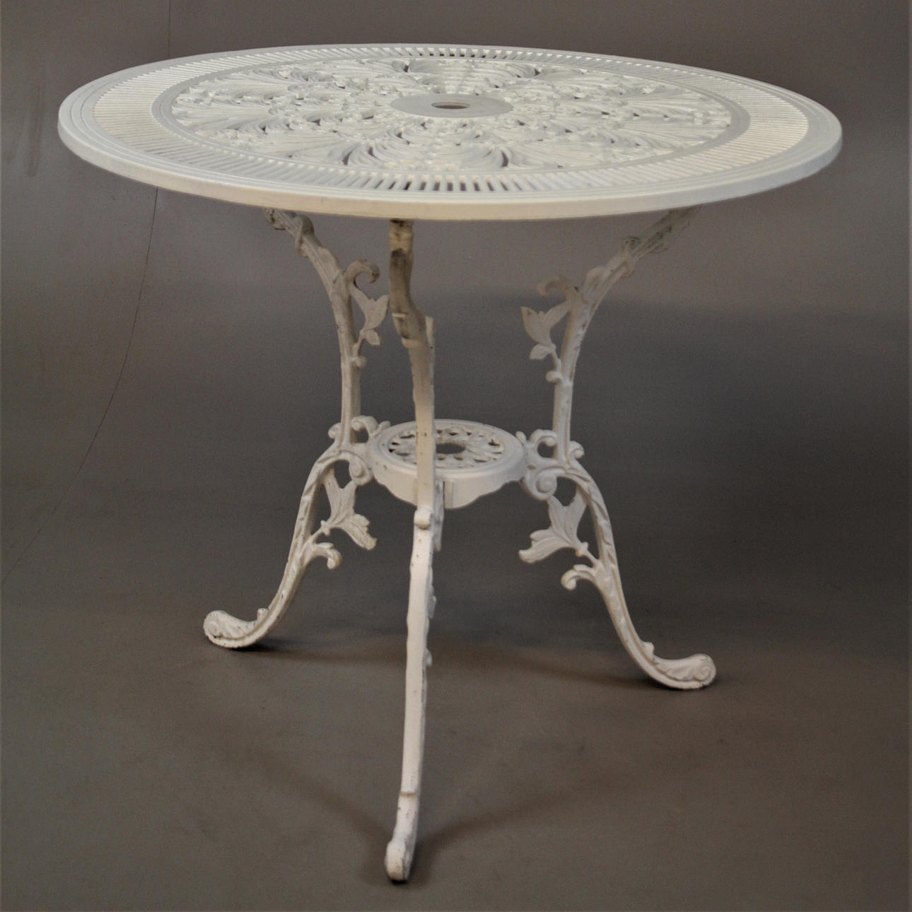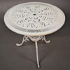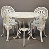 Bord med två stolar. Bord ca Ø 80 cm, höjd 69,5 cm. Stol höjd 84 cm, sitthöjd 40,5 cm.