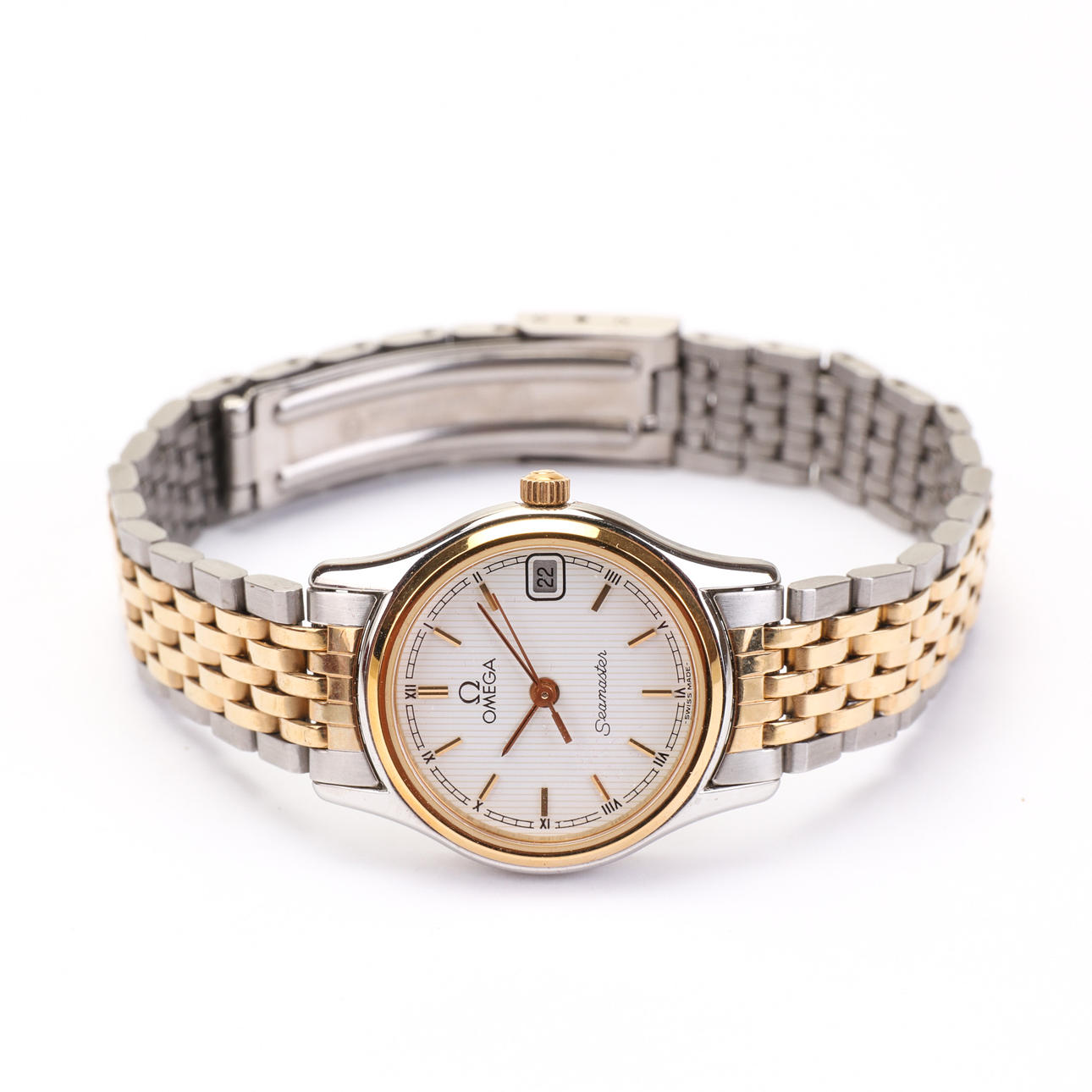 2279960. OMEGA, dam, Seamaster, quartz, datumfönster, stålarmabnd.