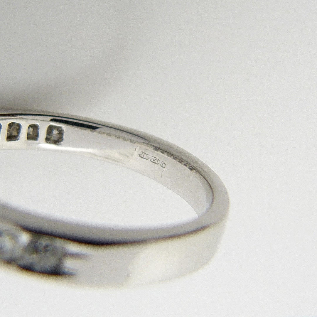 Denna ring är 18k vitguld (stämplat). Det åtföljs av ett World Gemological Institute certifikat nr. WGI9624126503.