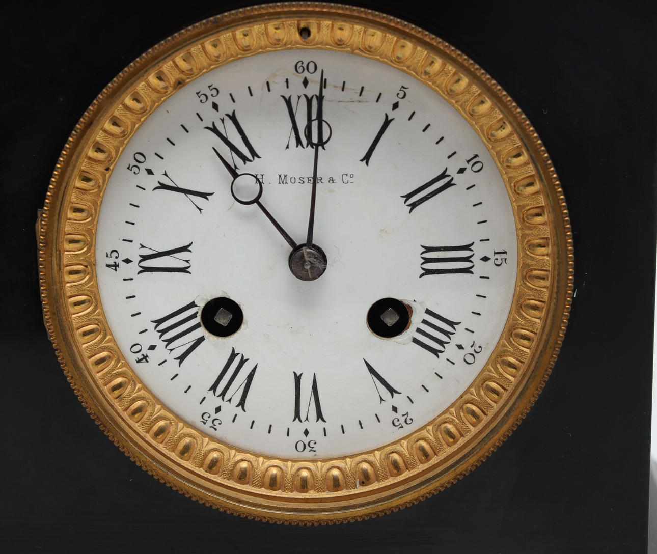 sten, vitemaljerad urtavla med romerska siffror, höjd ca 23, 22x14 cm.