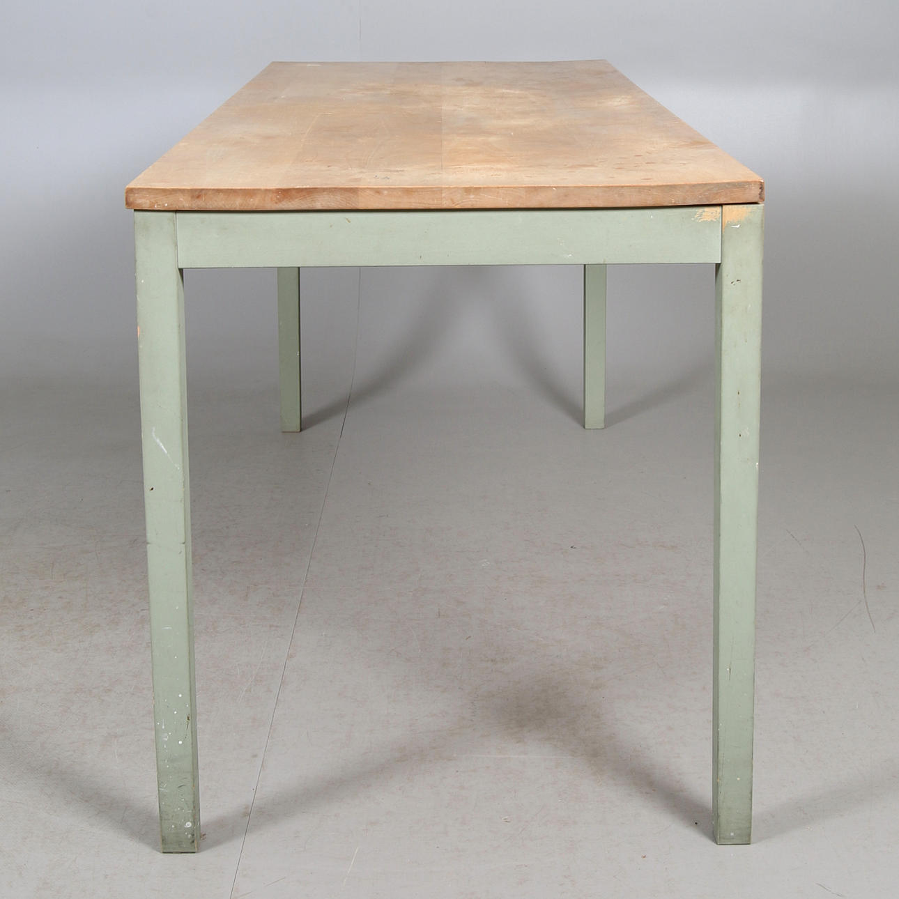 Brännmärkt. Delvist bemålad björk. Längd 180, bredd 66, höjd 74 cm.