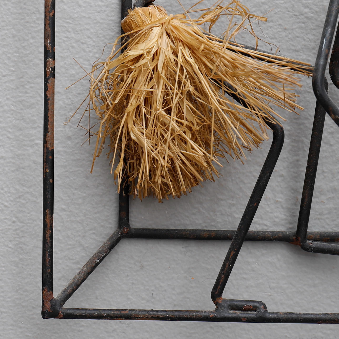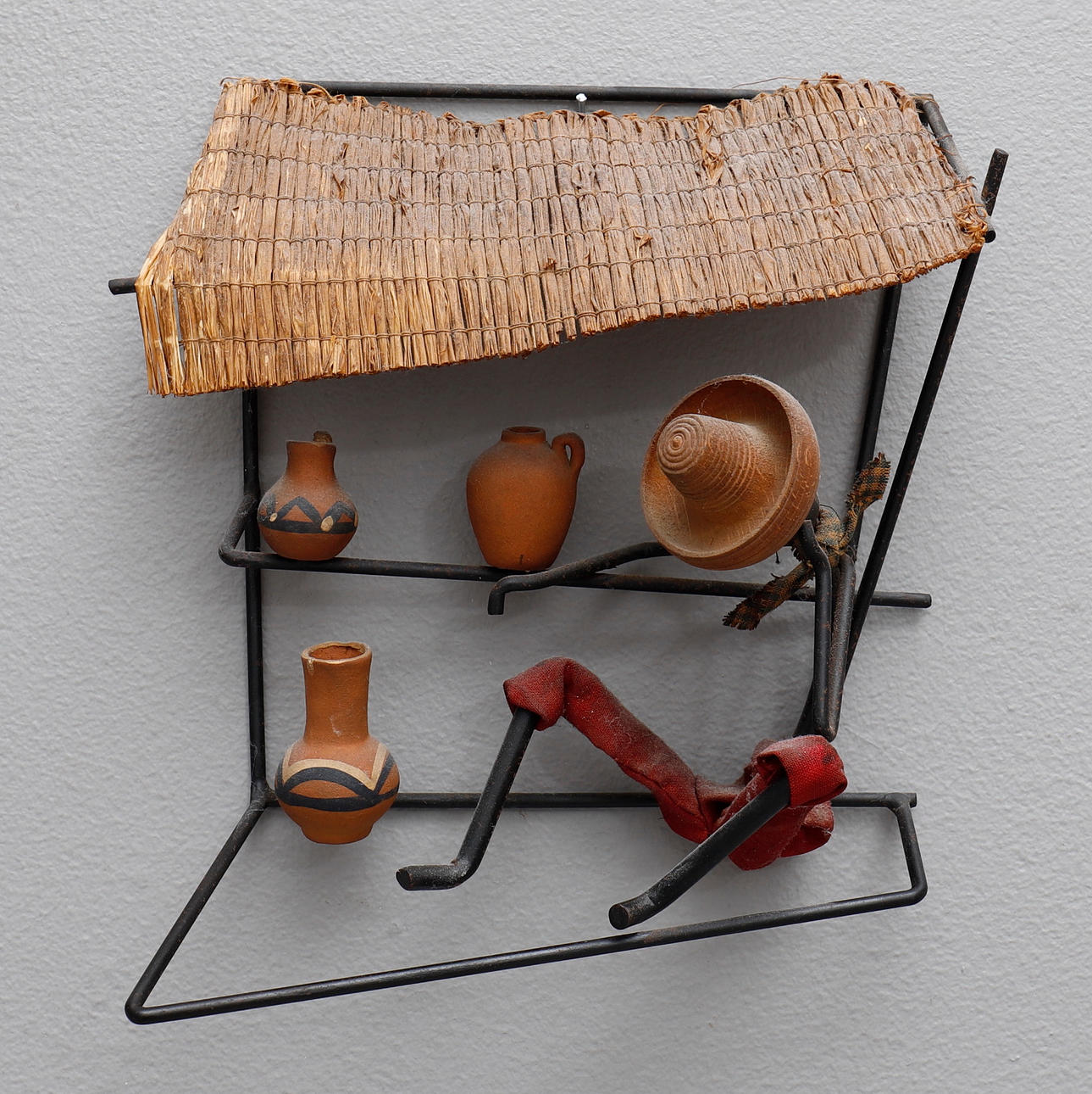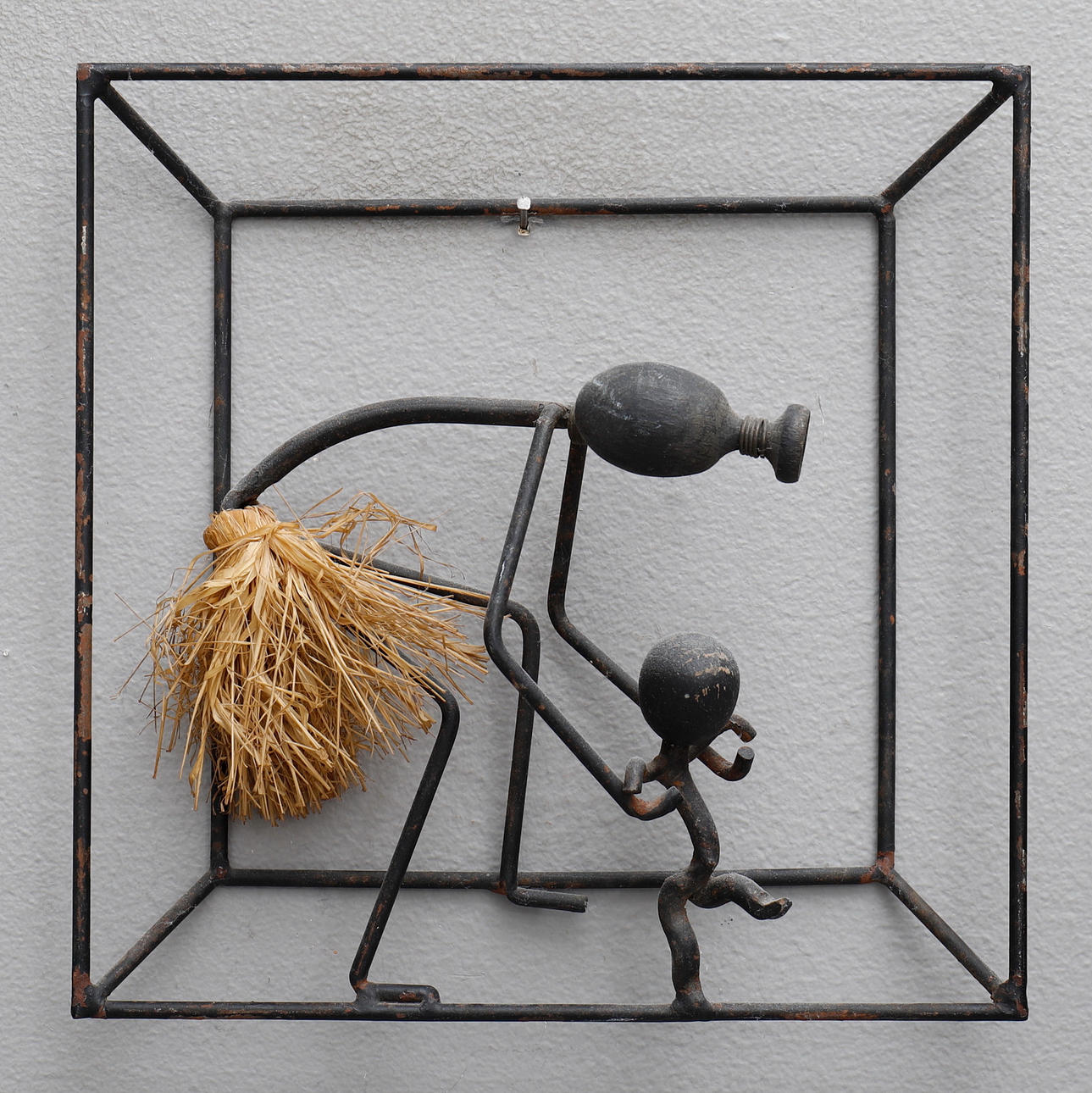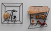 Lackad metall, trä, lera och textil, ca 24x22 samt 23x23 cm.