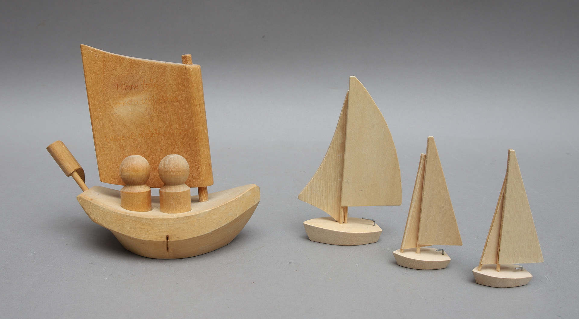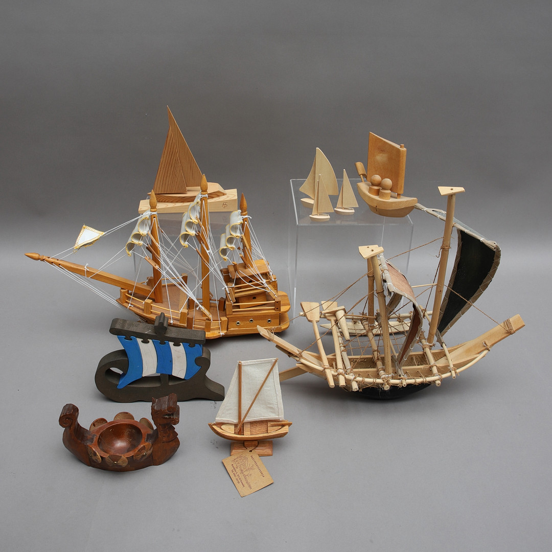 2295233. MODELLBÅTAR, 10 st. trä, bambu, textil.