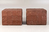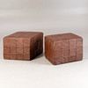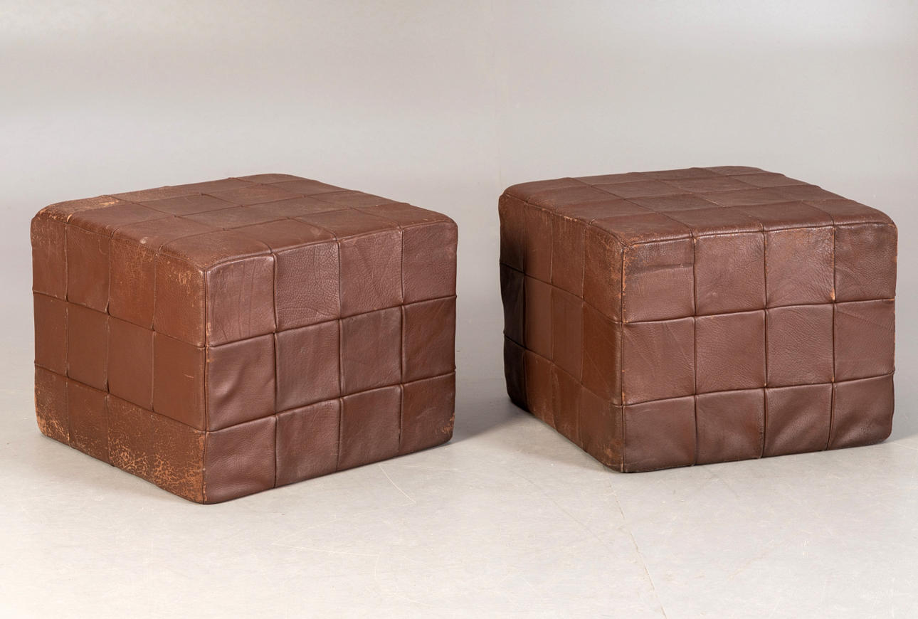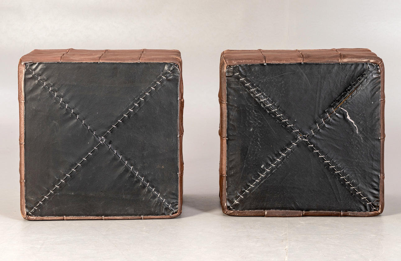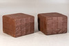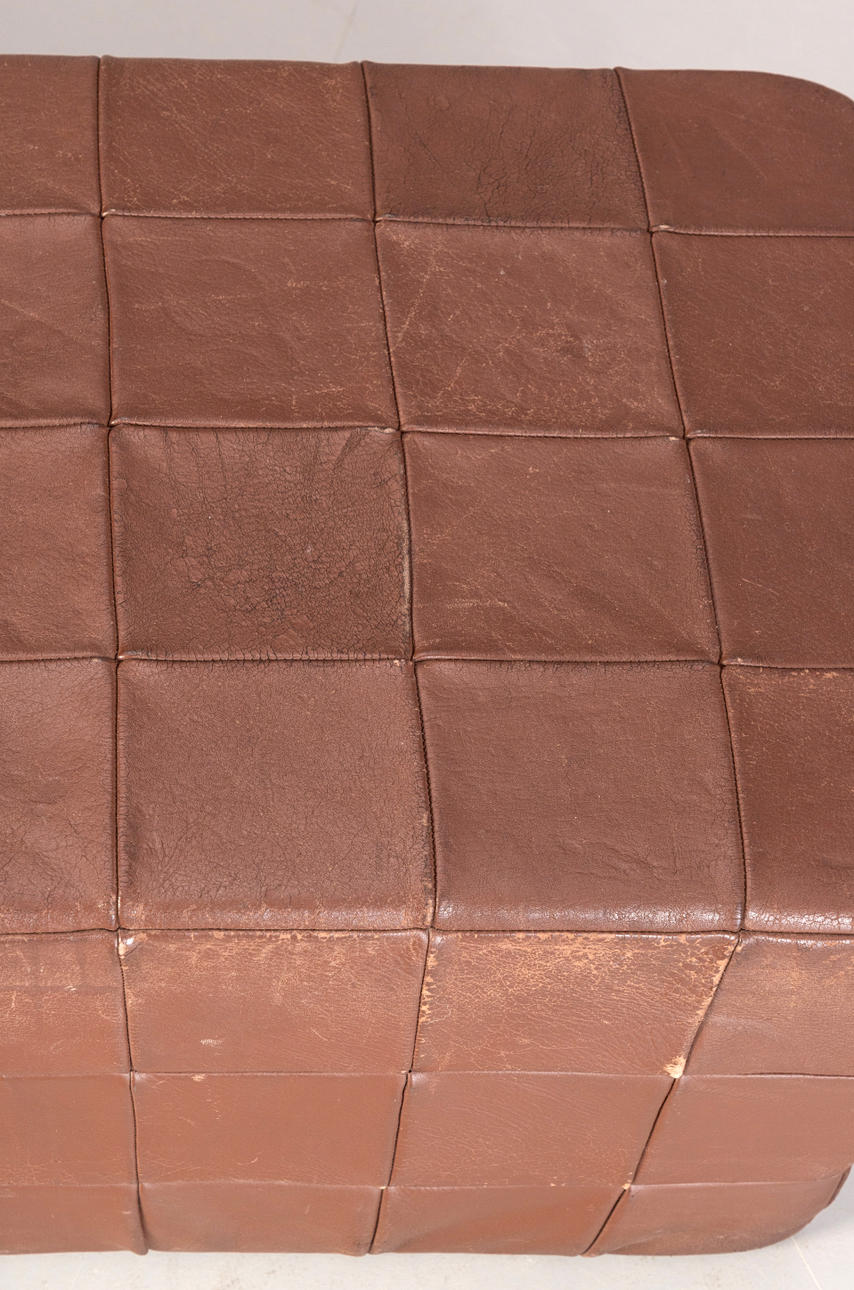 Kubformad lapptäcke pall i mörkbrunt läder, HxBxD: ca. 40x52x53 cm.