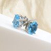 Ett par silverörhängen klo-set med naturlig schweizisk blå topas och utrustad med fjärilsryggar.