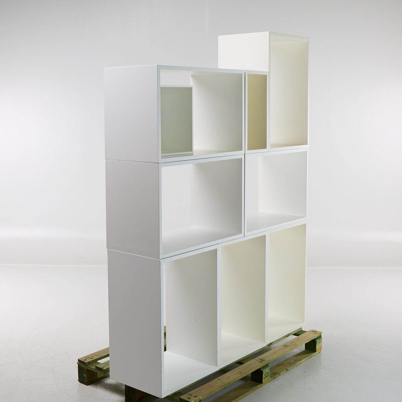 7 moduler ca 65x43x35, 1 modul ca 22x43x35 samt 1 modul ca 33x33x27 cm.