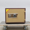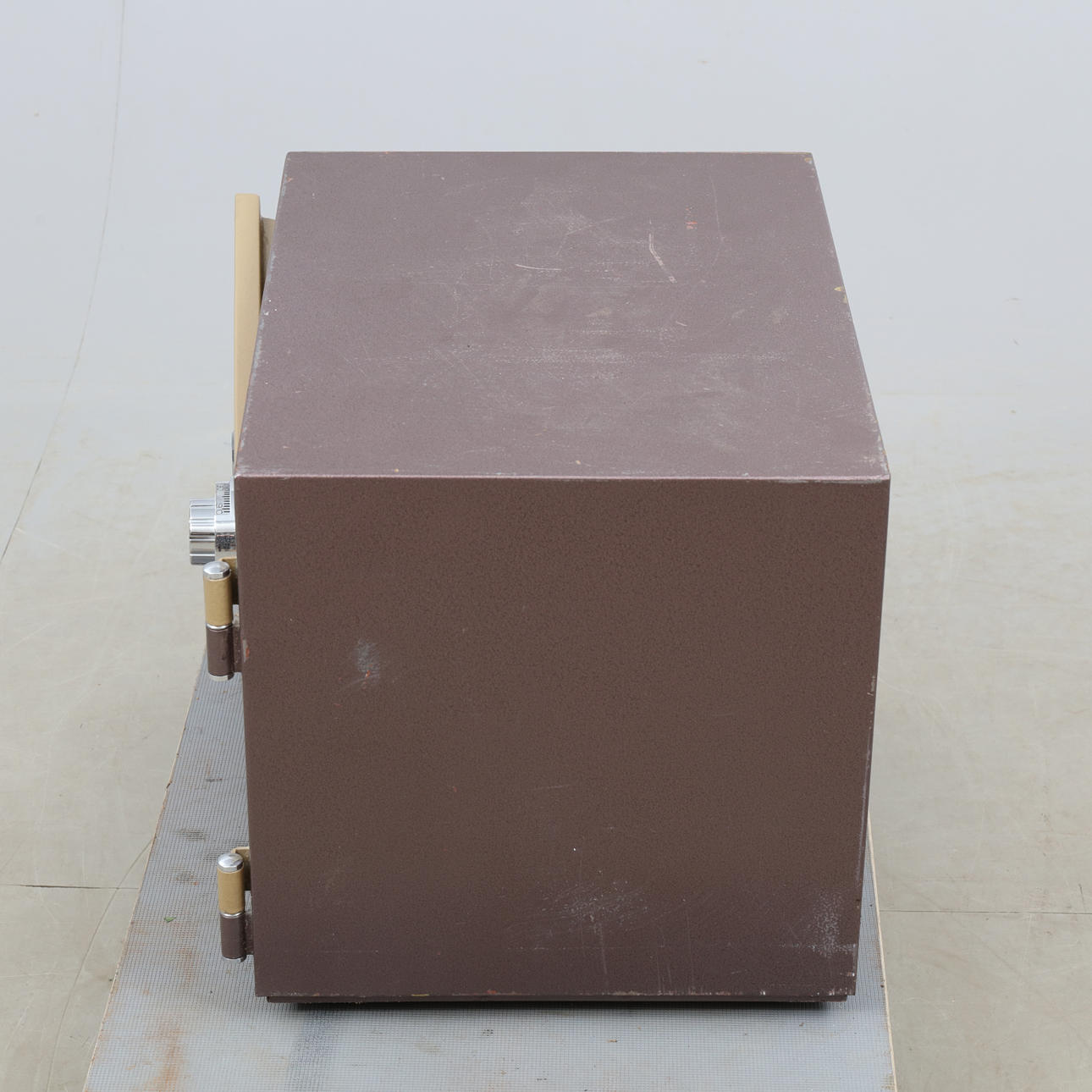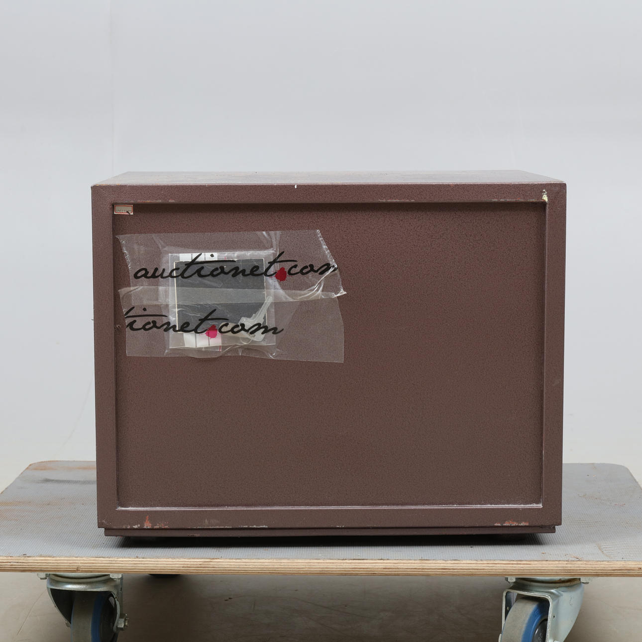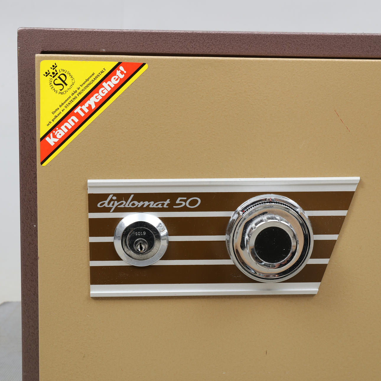 Låses med nyckel samt kod. Två nycklar samt papper med kod medföljer. Längd ca 41, bredd 38, höjd 34 cm.