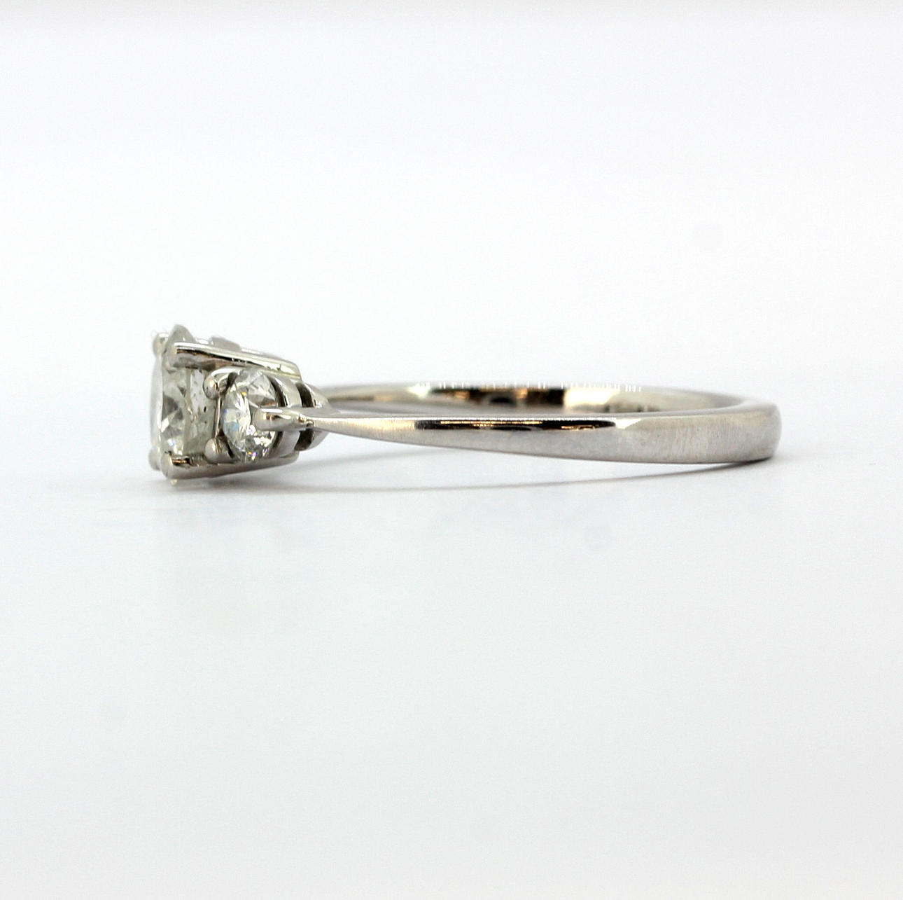 Ring platina med tre stora ljusa briljantslipade diamanter, ca. 1.50ct totalt, färg G/H, klarhet PK, storlek R. Med certifikat.