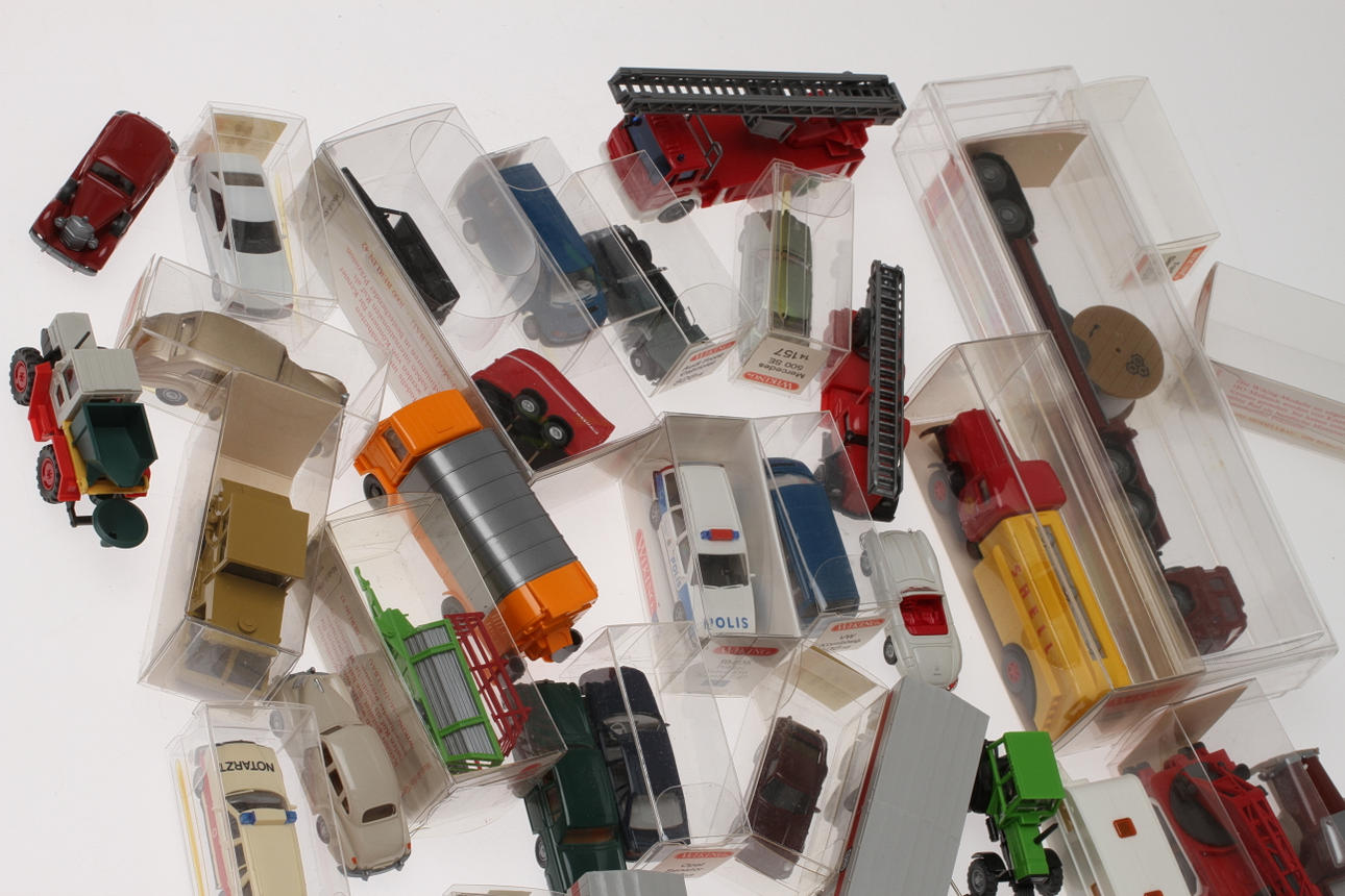 Cirka 40 modellbilar, skala H0, mestadels med originalkartonger.