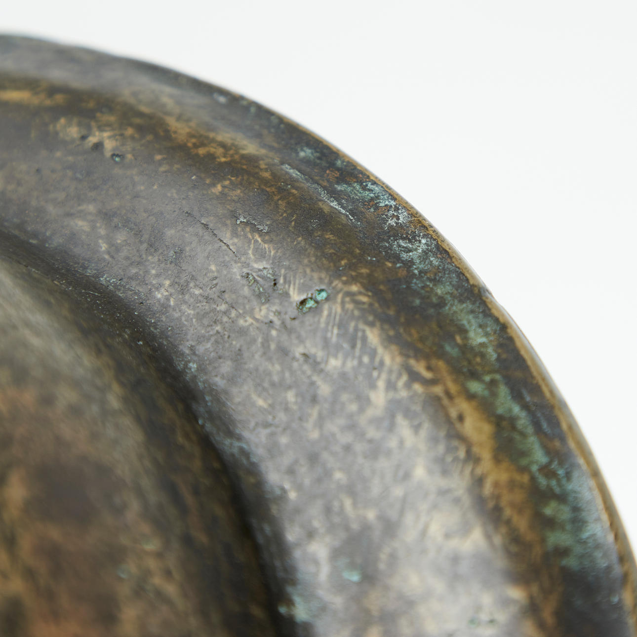 Tecken på användning och gnidning i proportion till ålder, delvis starkare patina i bronsen.