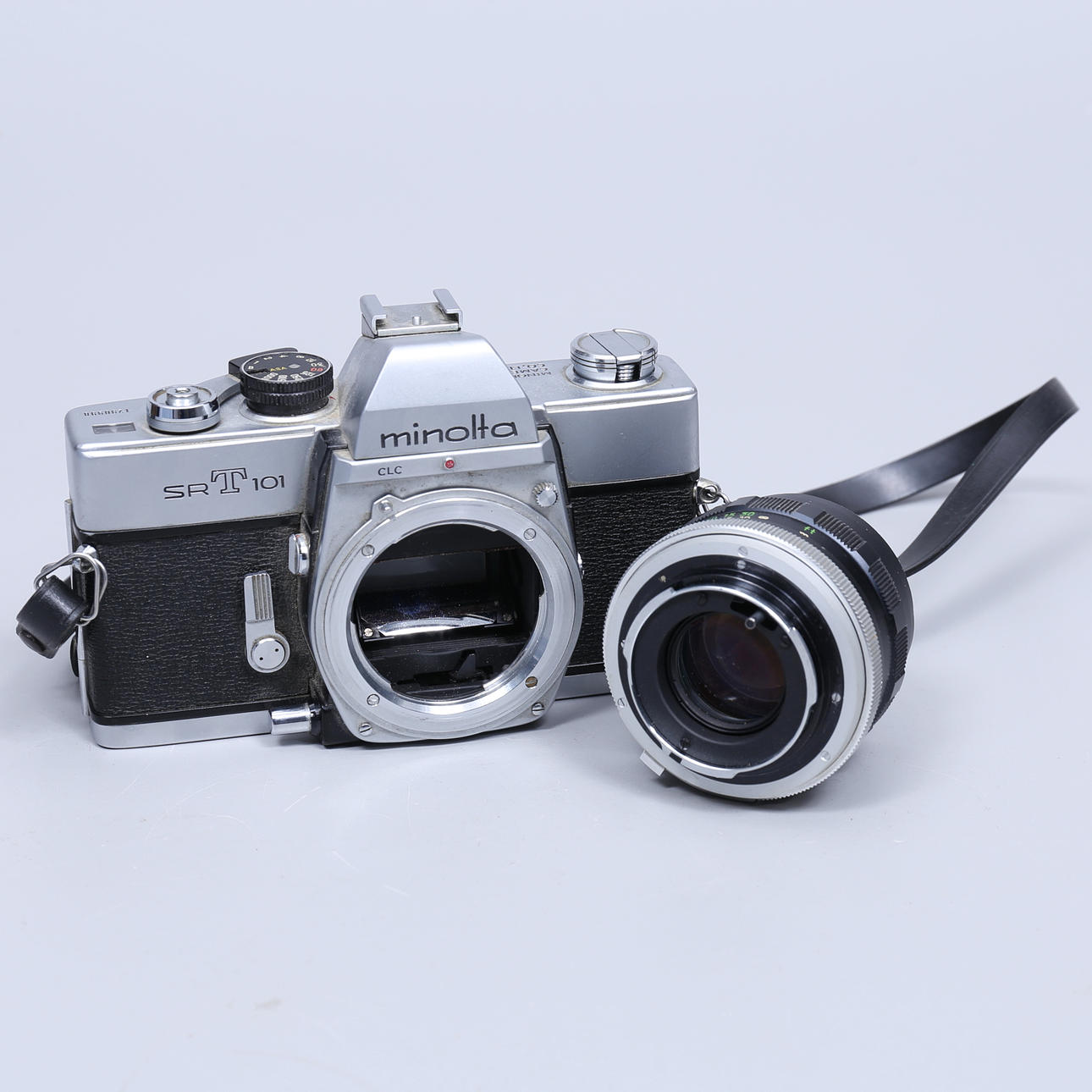 Kamera, Minolta SRT 101 med objektiv Minolta MC Rokkor - PF, 55mm, f=1.7.