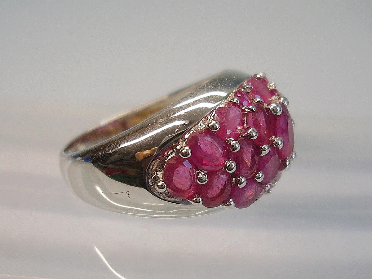 Ringen är gjord av 925 silver och är stämplad som sådan. Det är satt med 23 runda och ovala fasetterade naturliga rubiner totalt 5 ct.