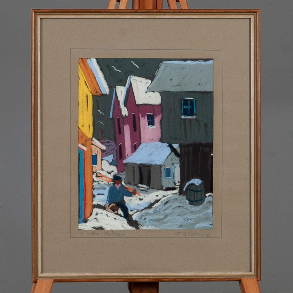 2309266. GUSTAF BÖRTNER. Pastell, "Vinter, Smögen", signerad.