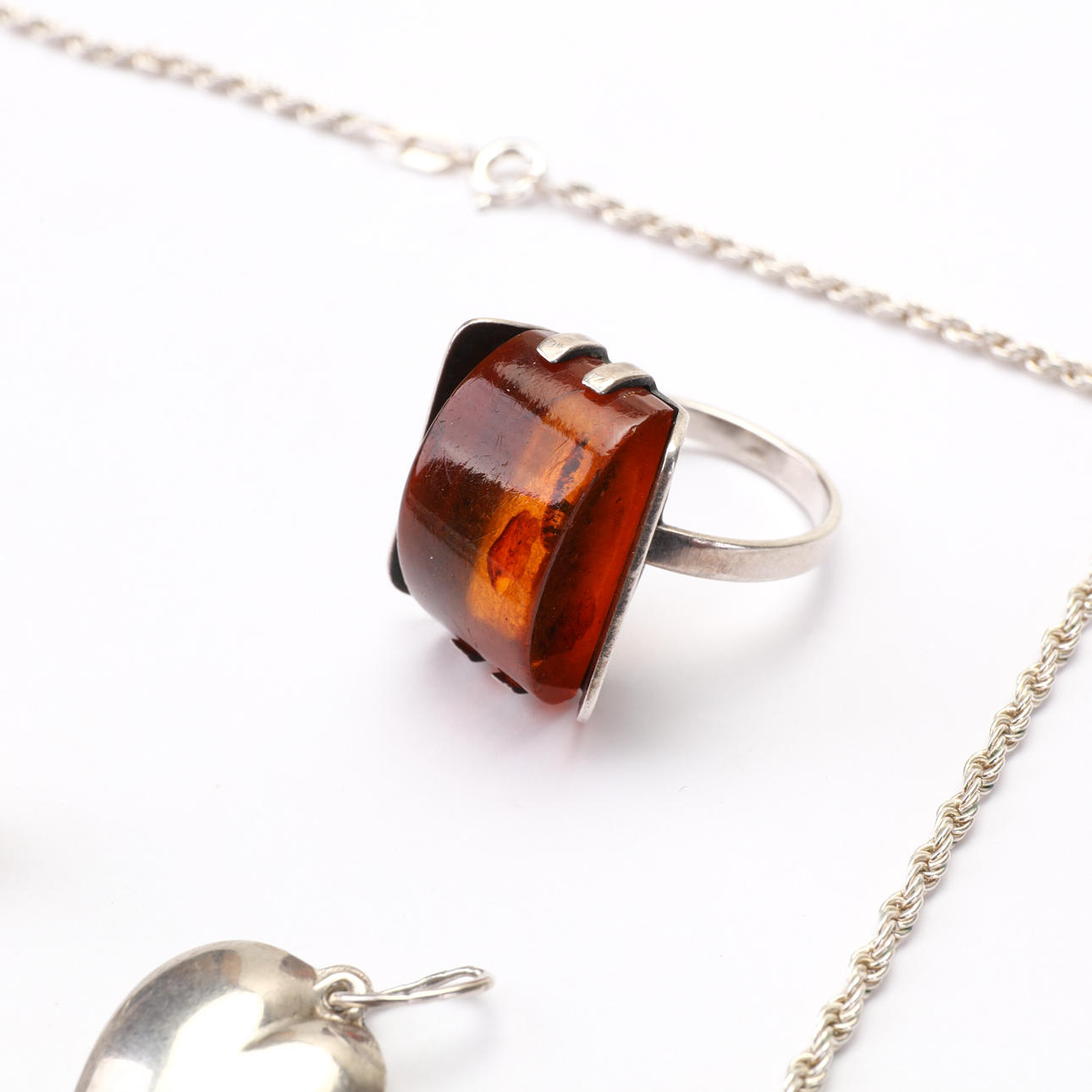 2312801. SMYCKEN, silver, herr, dam, bärnsten, opal, slipsnål, hängsmycke, ring.