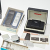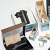 Minox, kamera bunt mycket. Artondelad samling bestående av olika filmkameror med tillbehör, inklusive filmvisningsförstoringsglas, dagsljus och utvecklingsburkar, ett stativ och en Yashika-miniatyrkamera med en Atoron Electro-lins, med en tygväska.