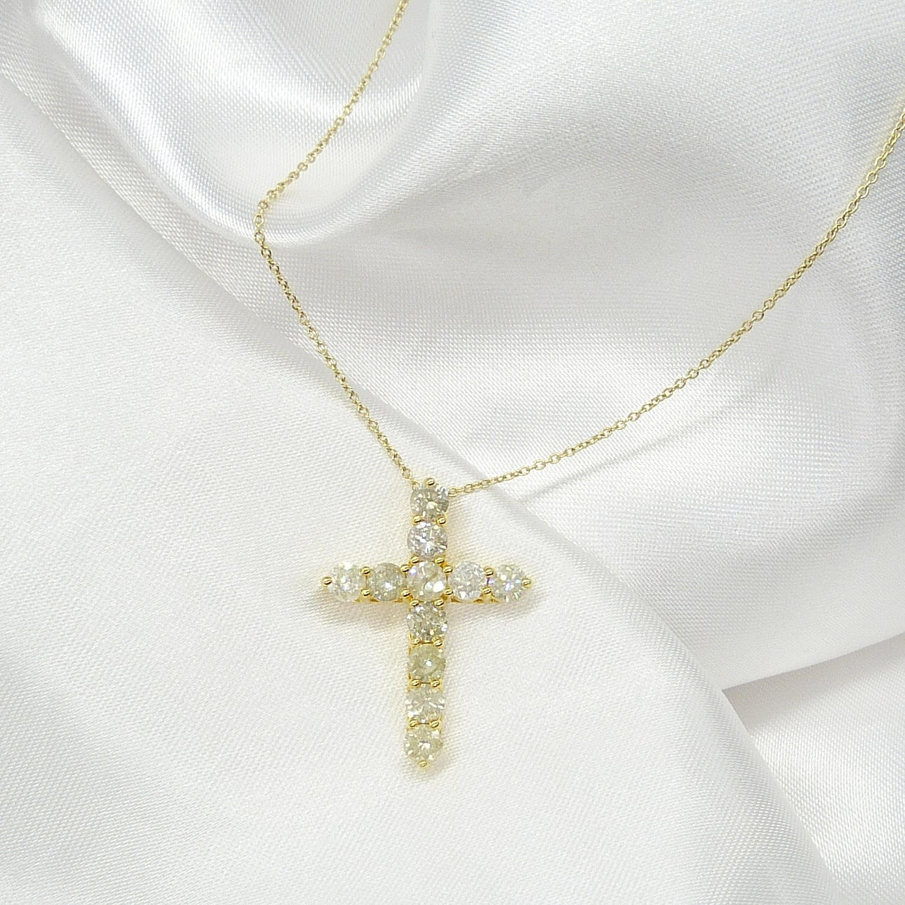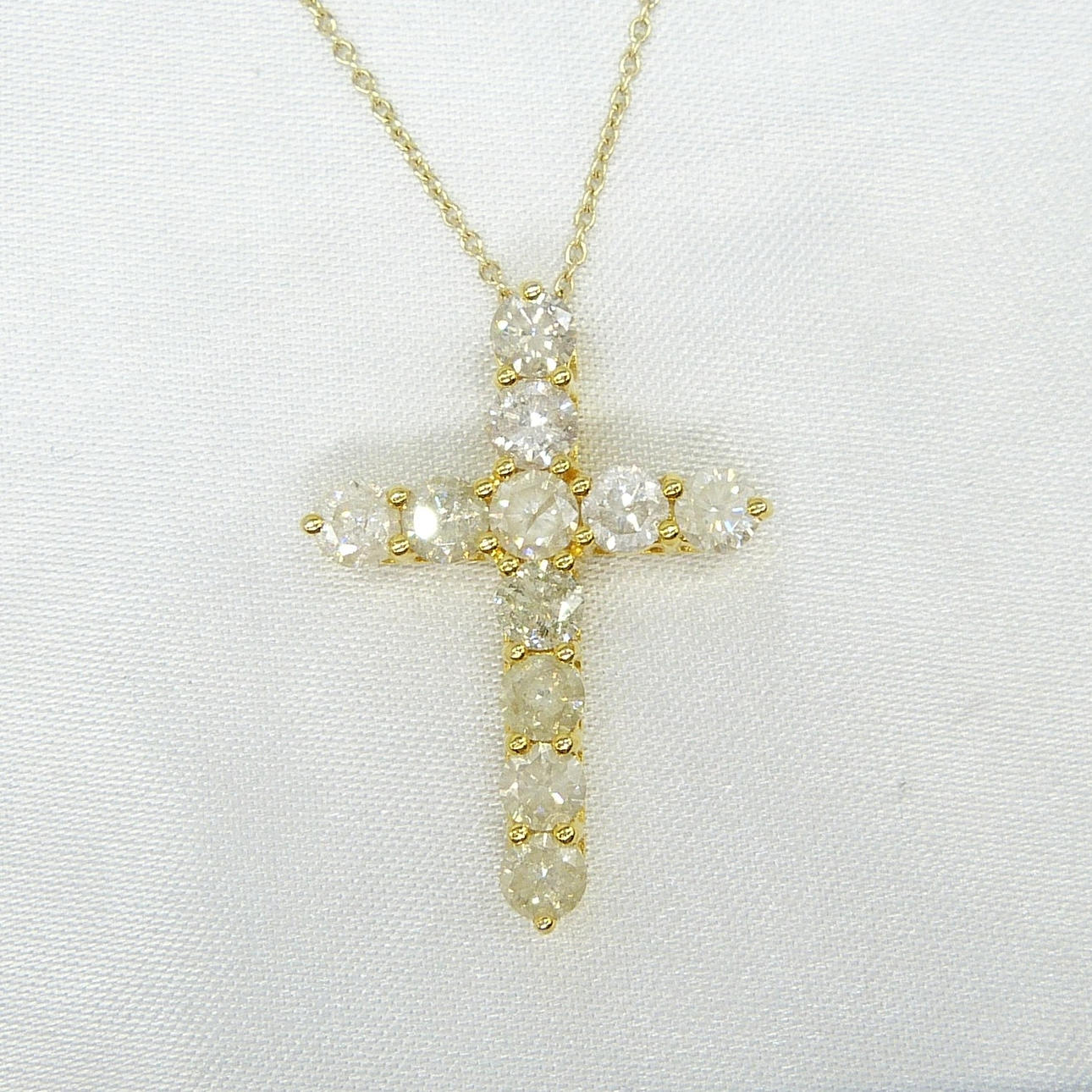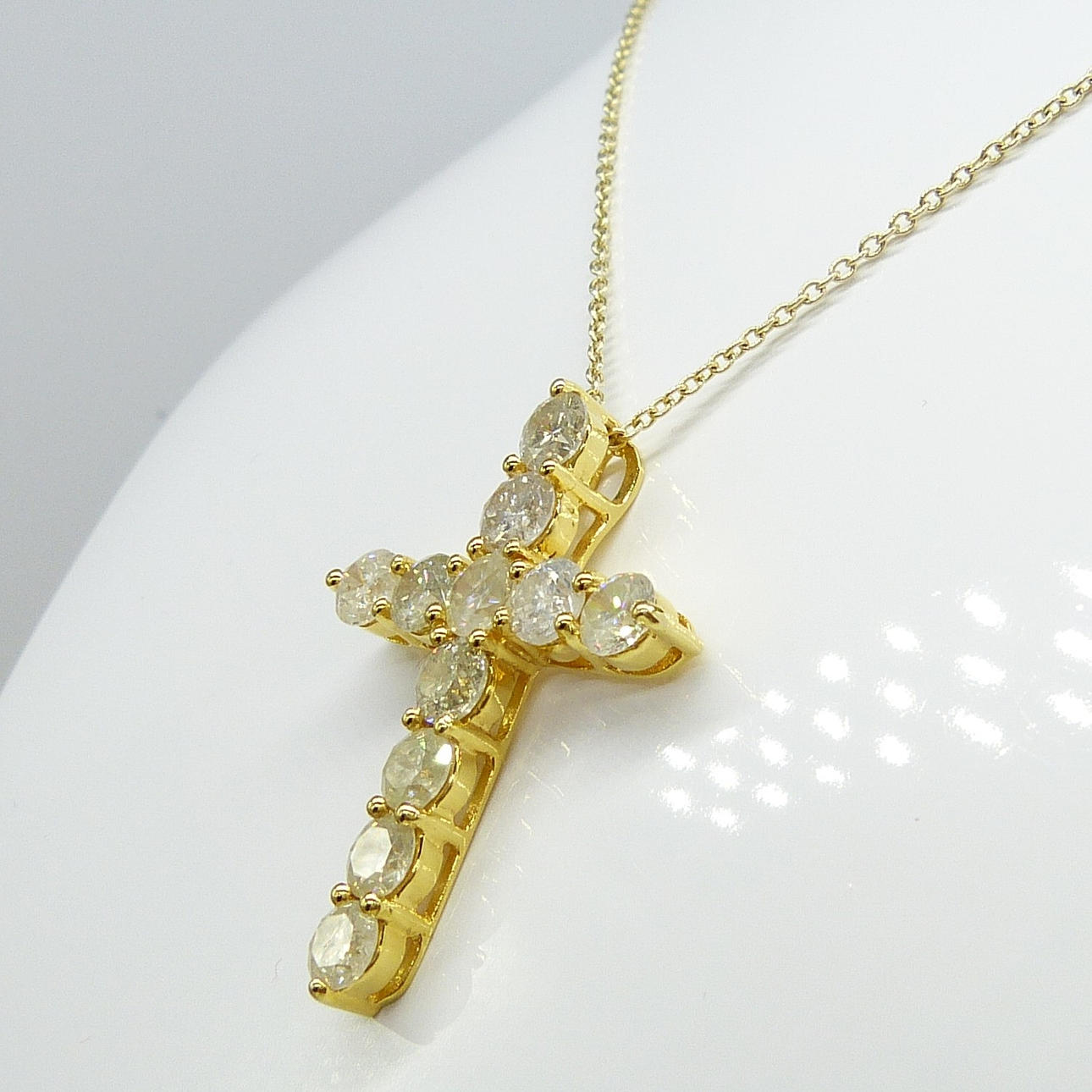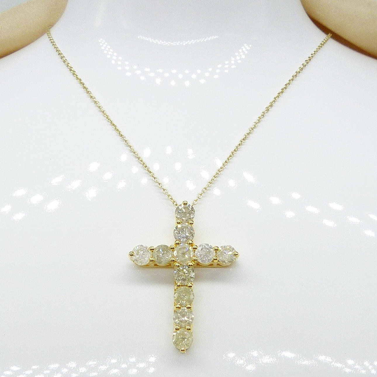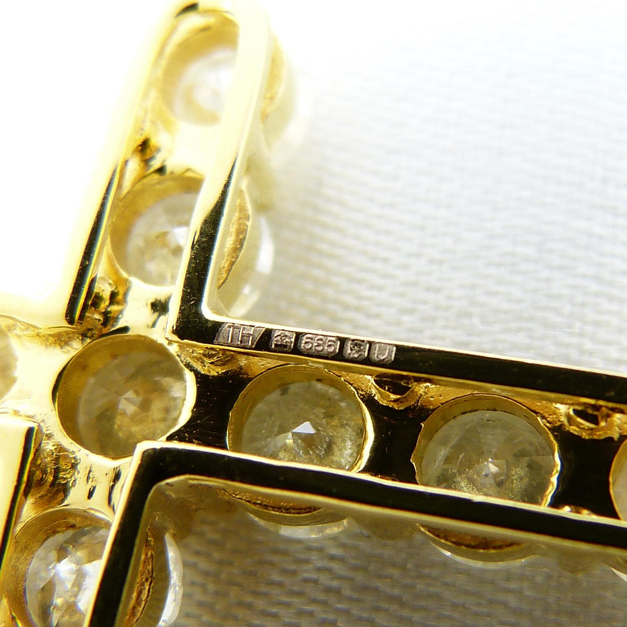 Diamanter: naturliga; 11 x rund briljant; 3,88 karat totalt; H-K färg (ca), I klarhet (ca); claw-set