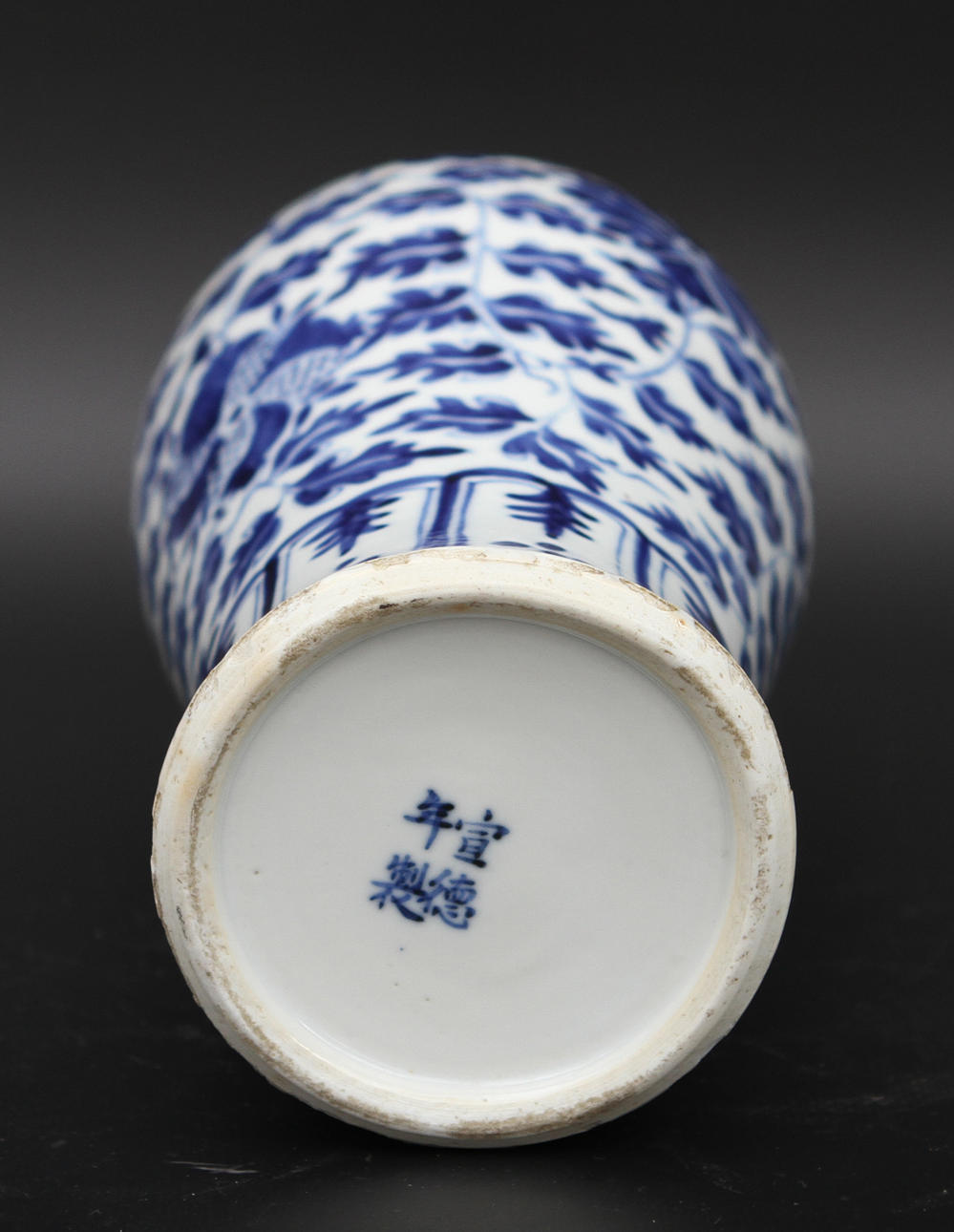 Dekor i underglasyrblått av växter. Höjd 27 cm.