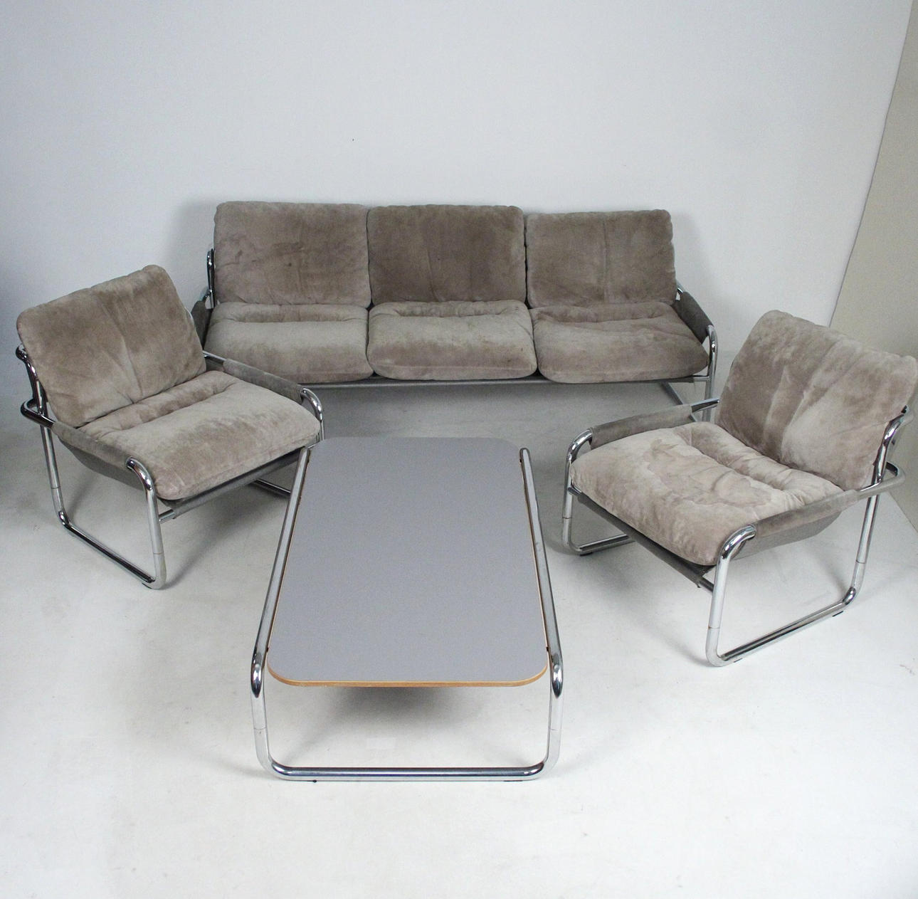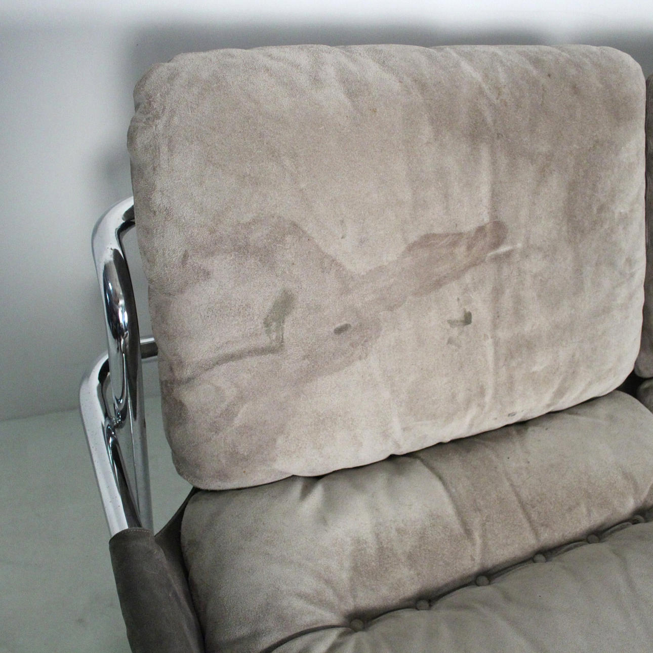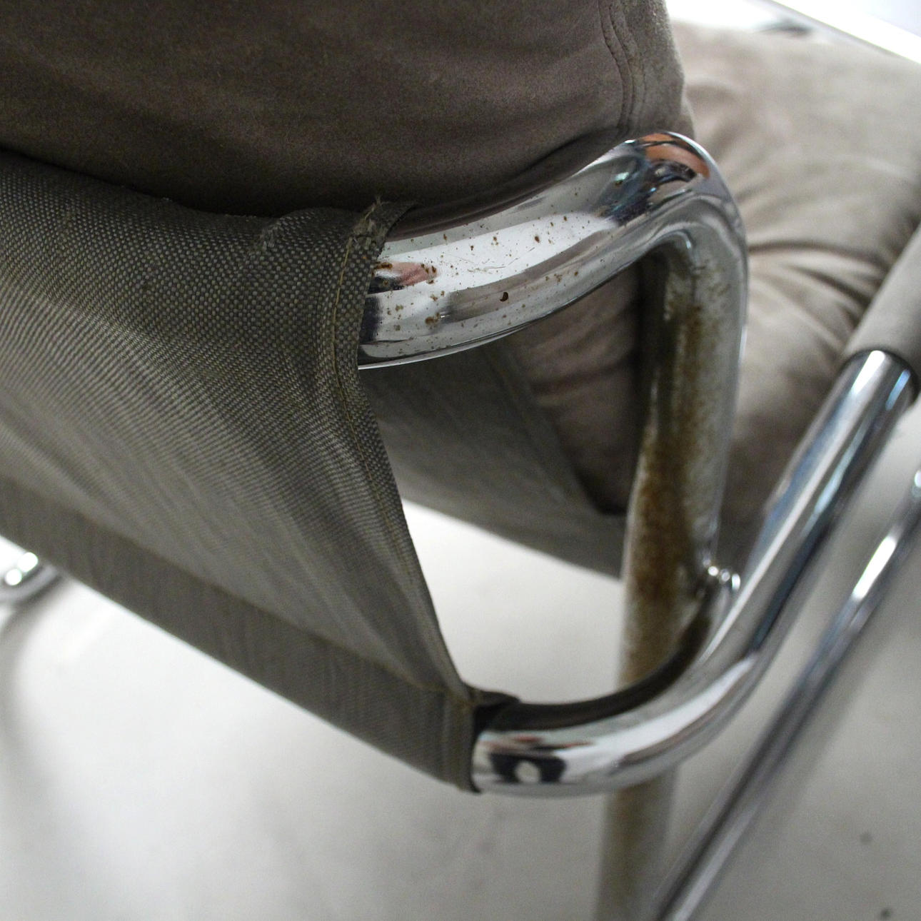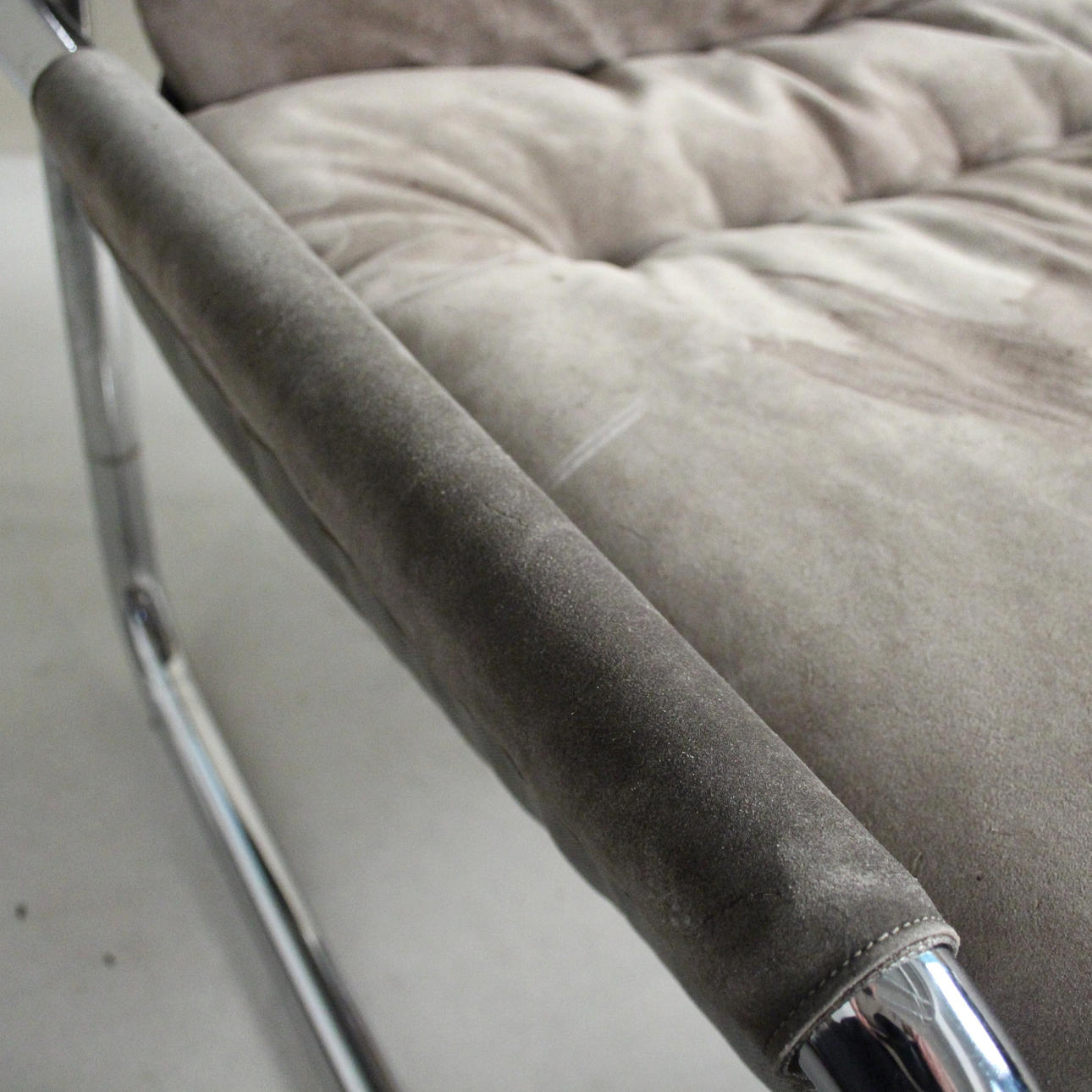Material: kromat stålrör, mocka, multiplex faner