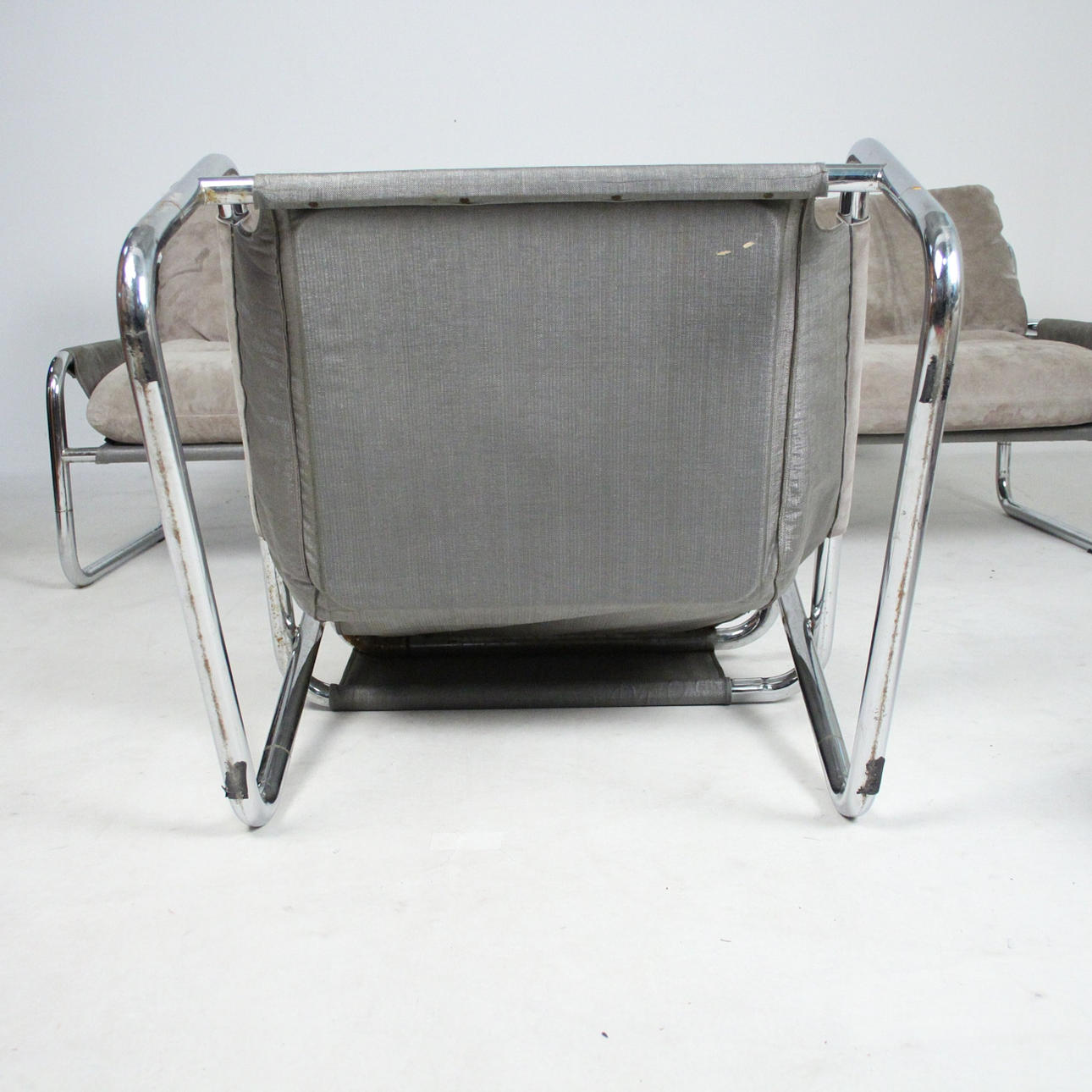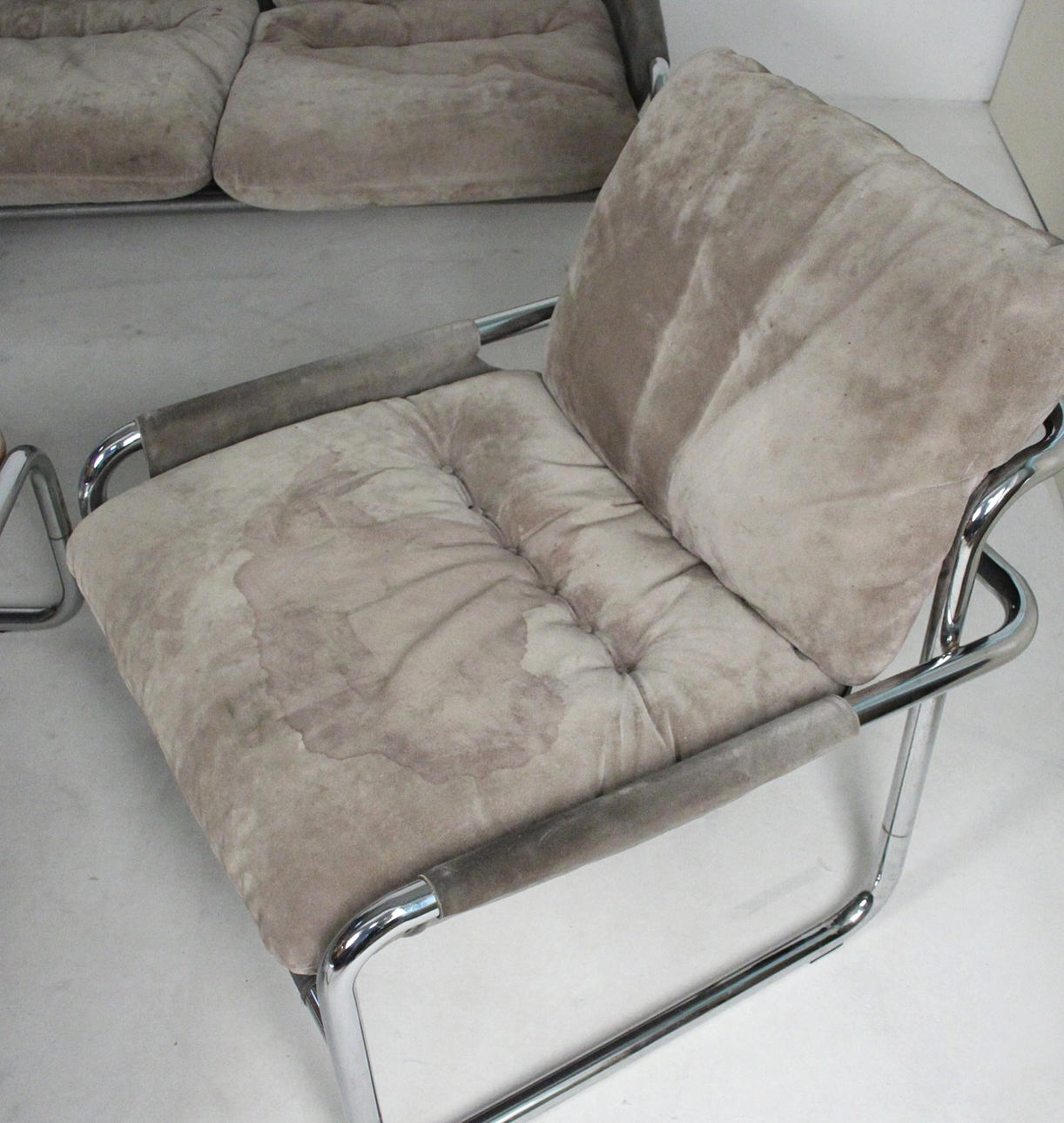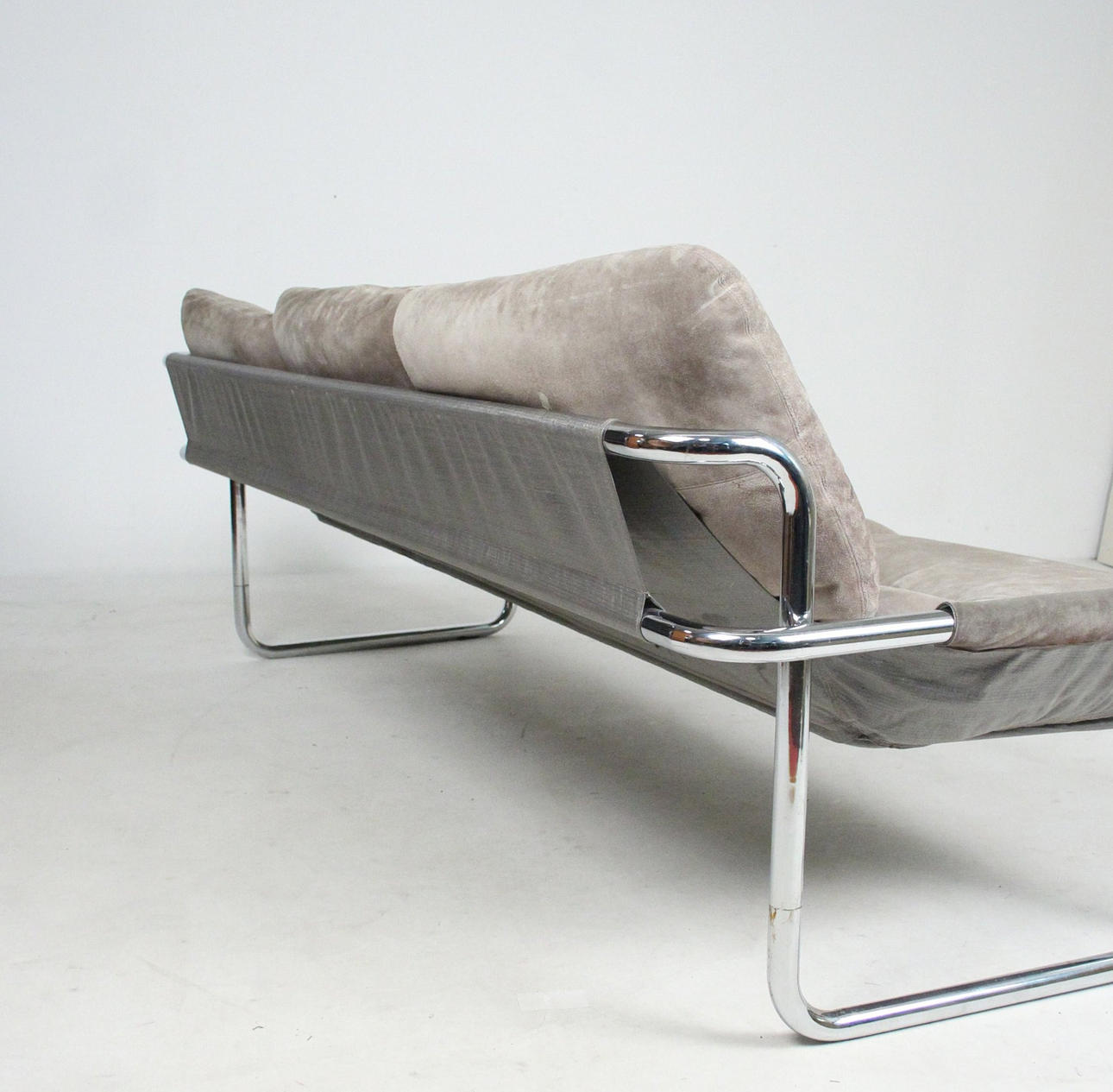 Material: kromat stålrör, mocka, multiplex faner