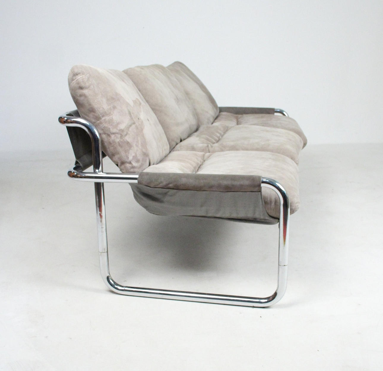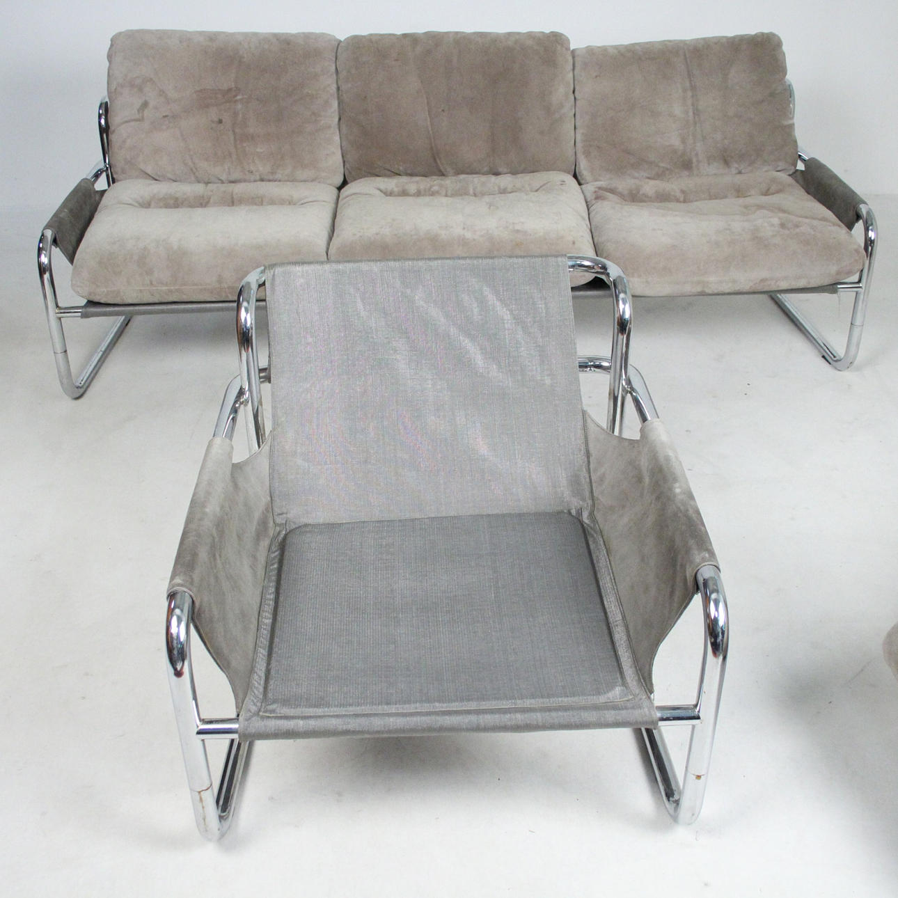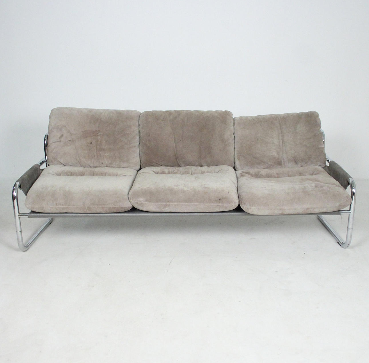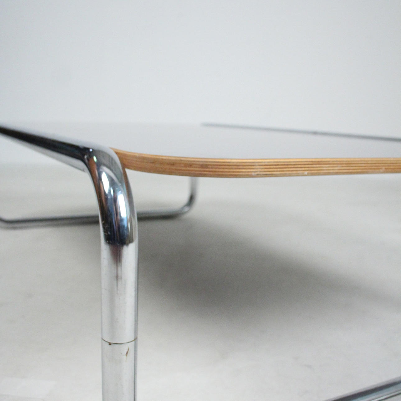 Material: kromat stålrör, mocka, multiplex faner