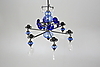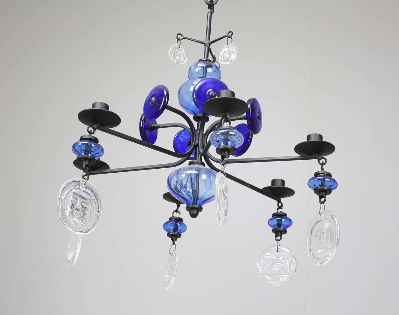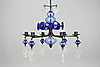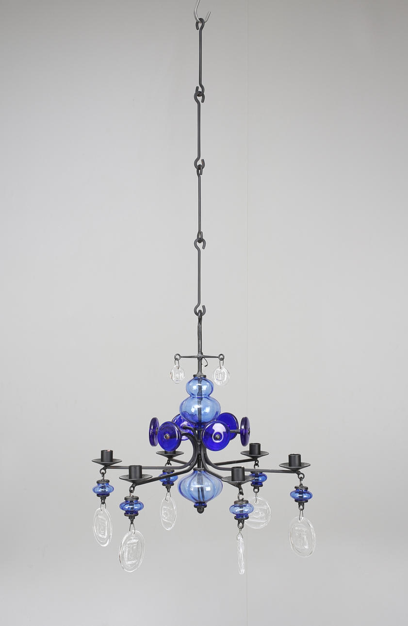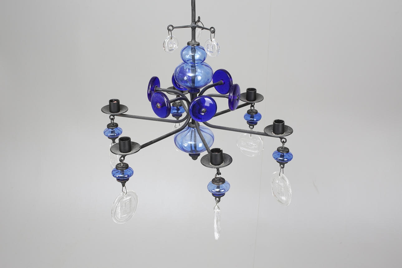 En av ljusarmarnas blåa glas har en spricka.