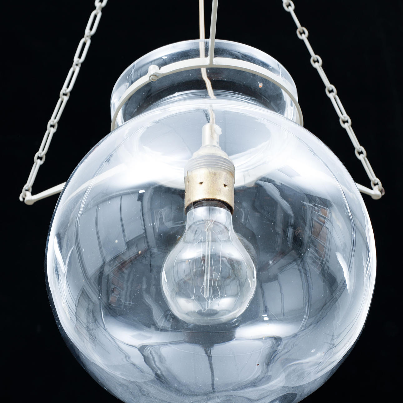 Ställning och kedjor i gråmålat järn, kupa i glas. Höjd kupa ca 27 cm