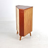 Hörnhögtalare, Blaupunkt, teak och plywood. Höjd 89 cm Bredd 69 cm Djup (mitten till hörn) 45 cm.