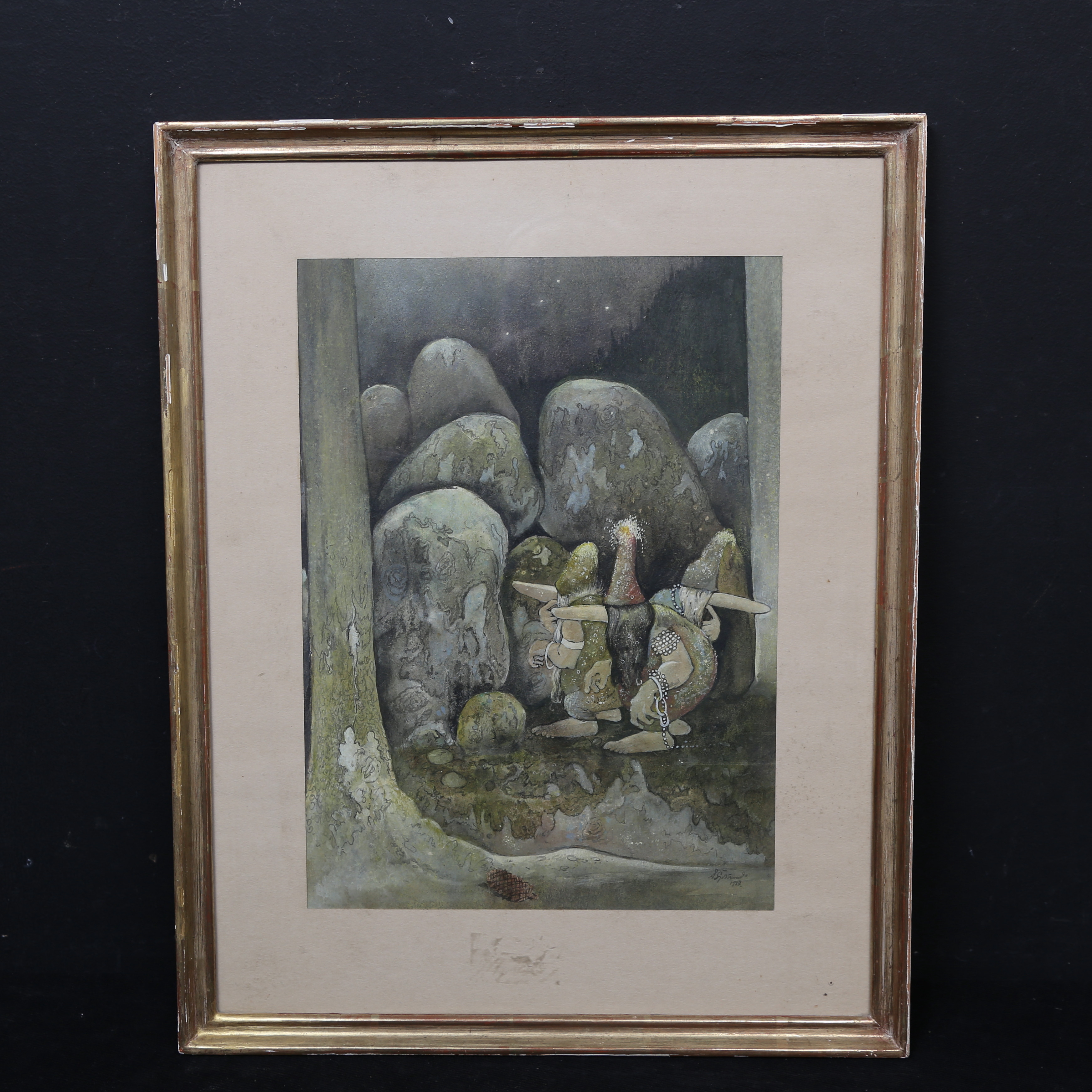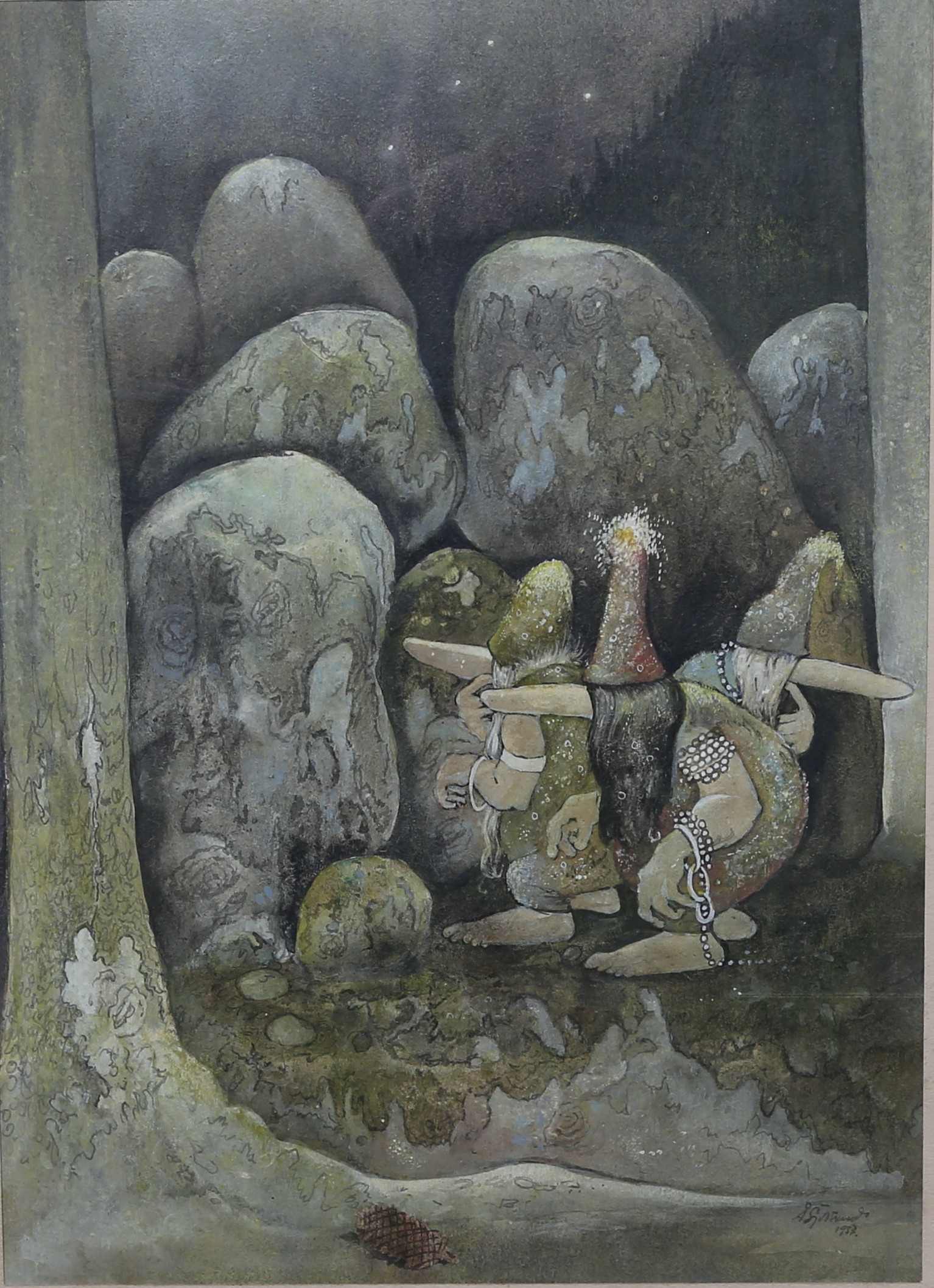 2324666. OIDENTIFIERAD KONSTNÄR. akvarell, "troll", daterad 1957.