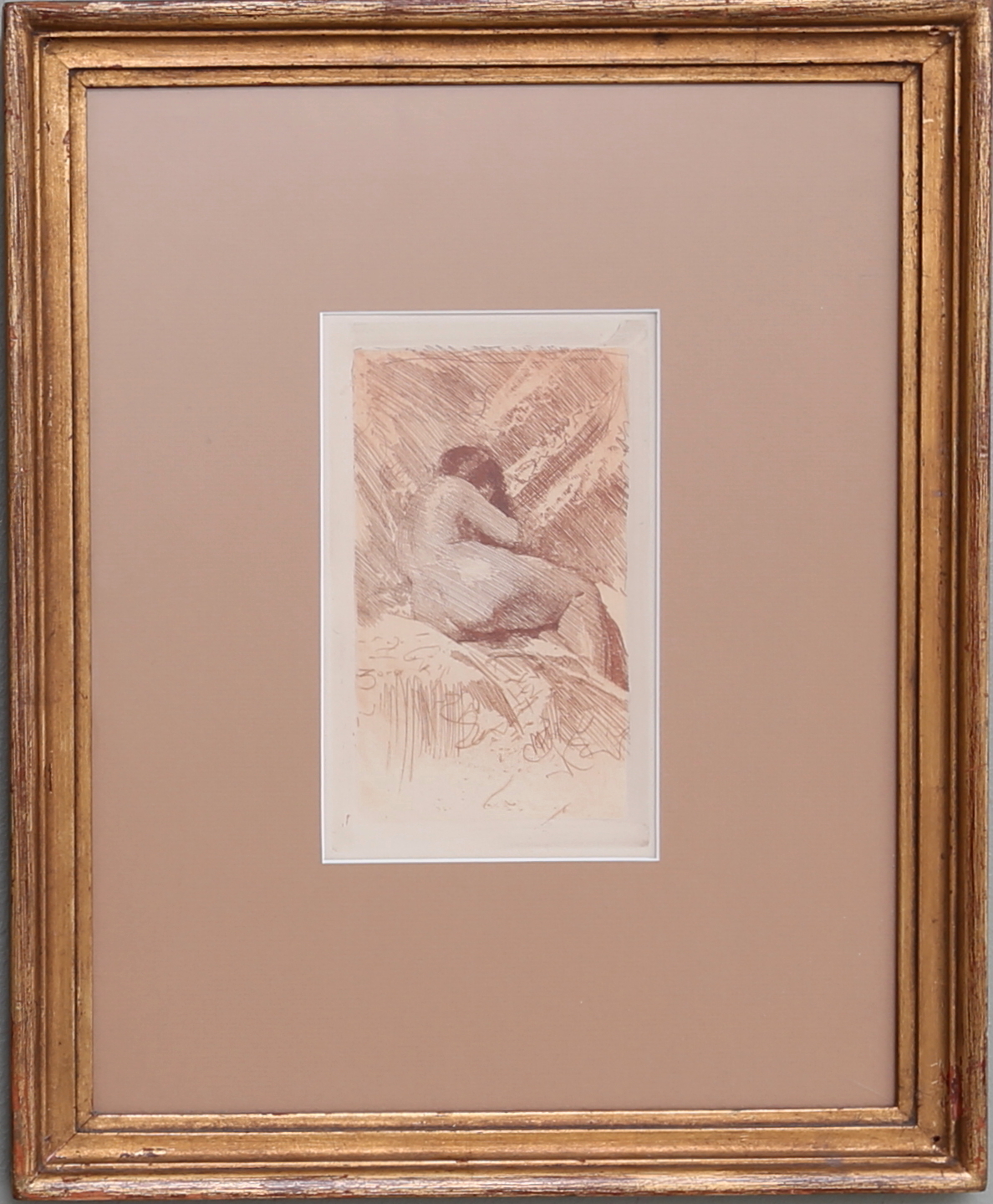 232814. ANDERS ZORN. Tavla, etsning, "Modellstudie", 1884.