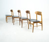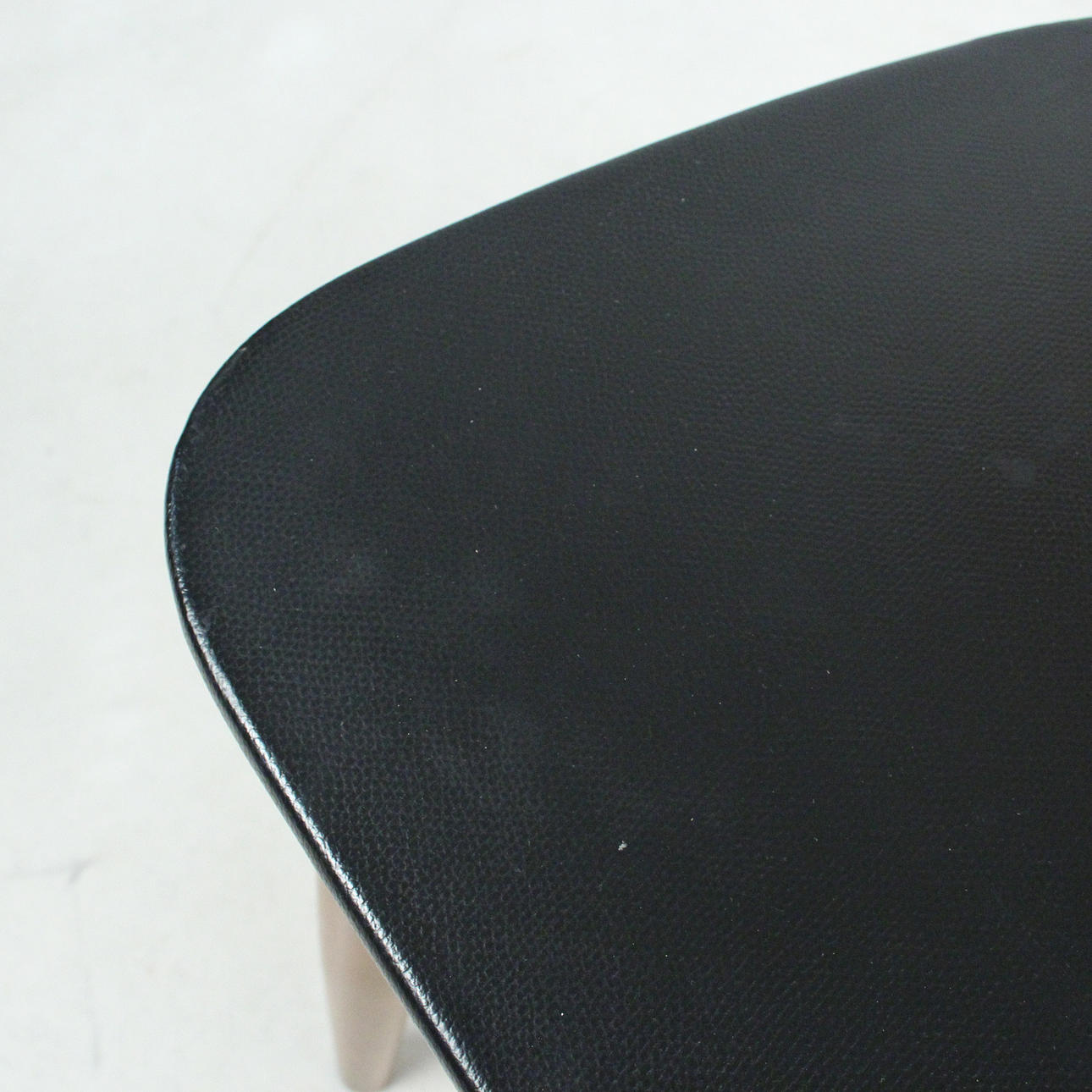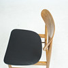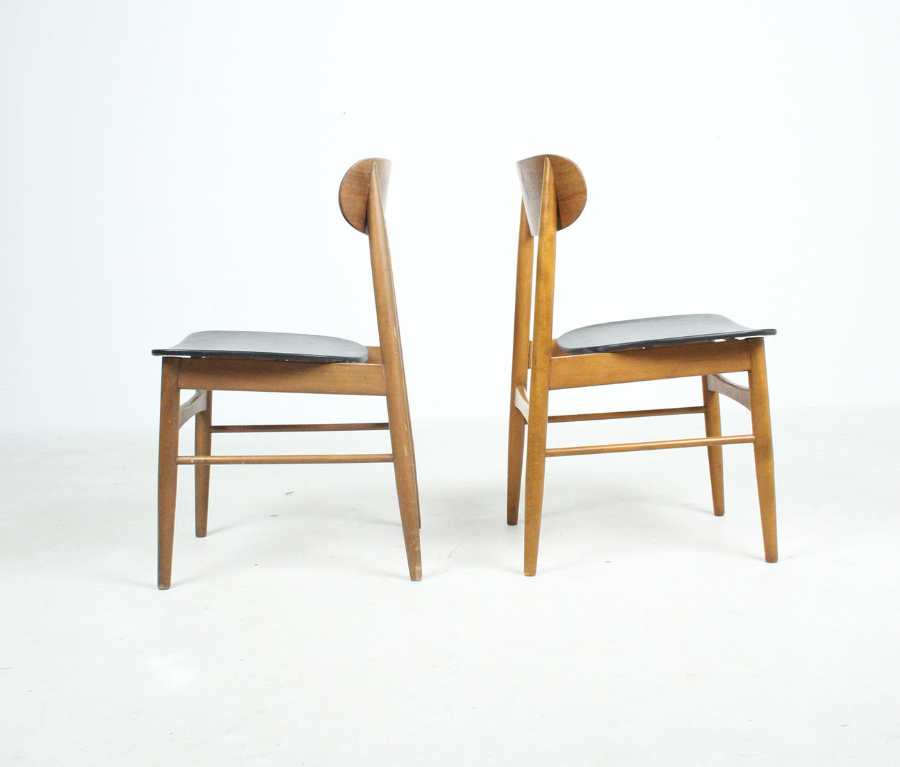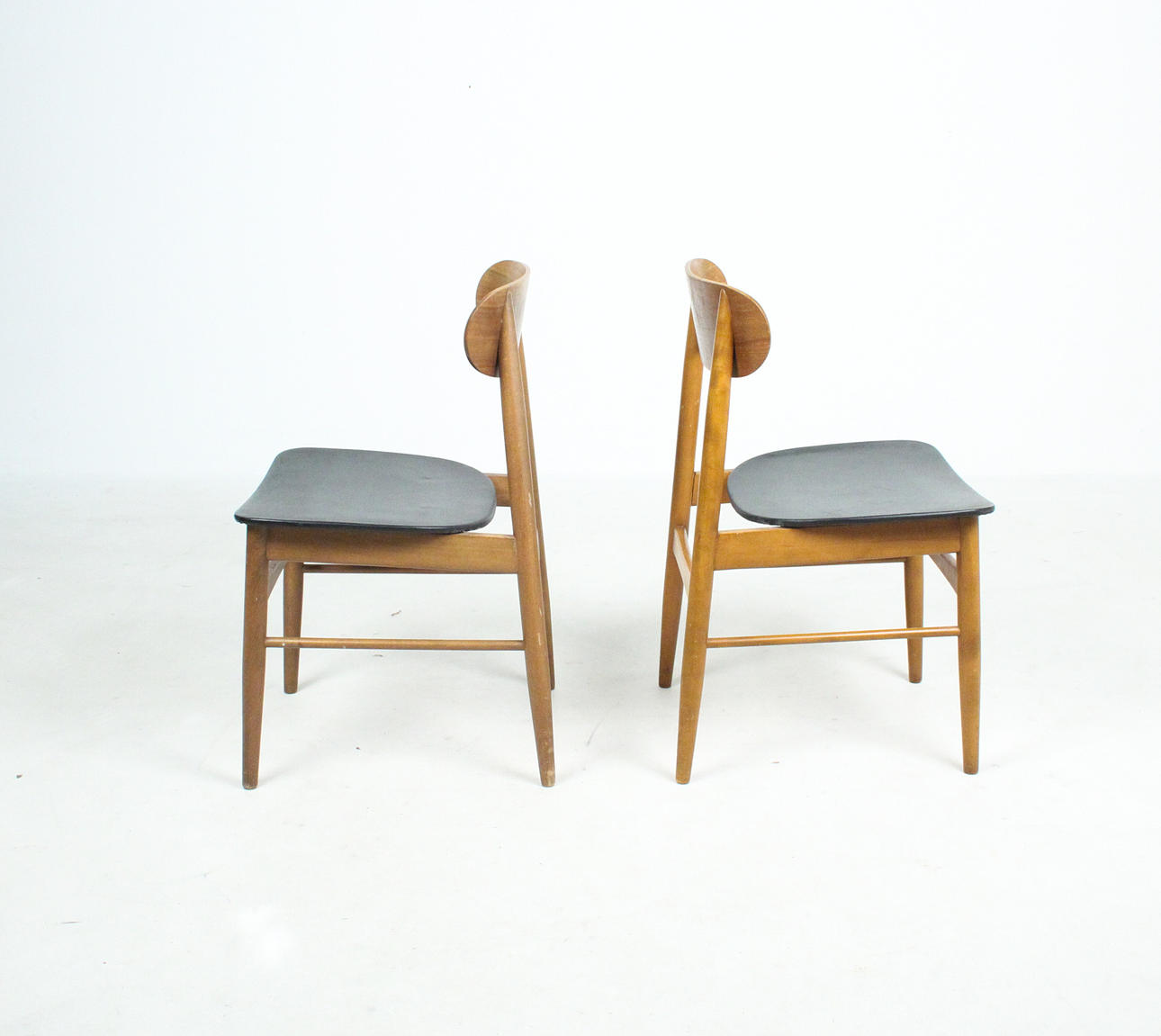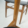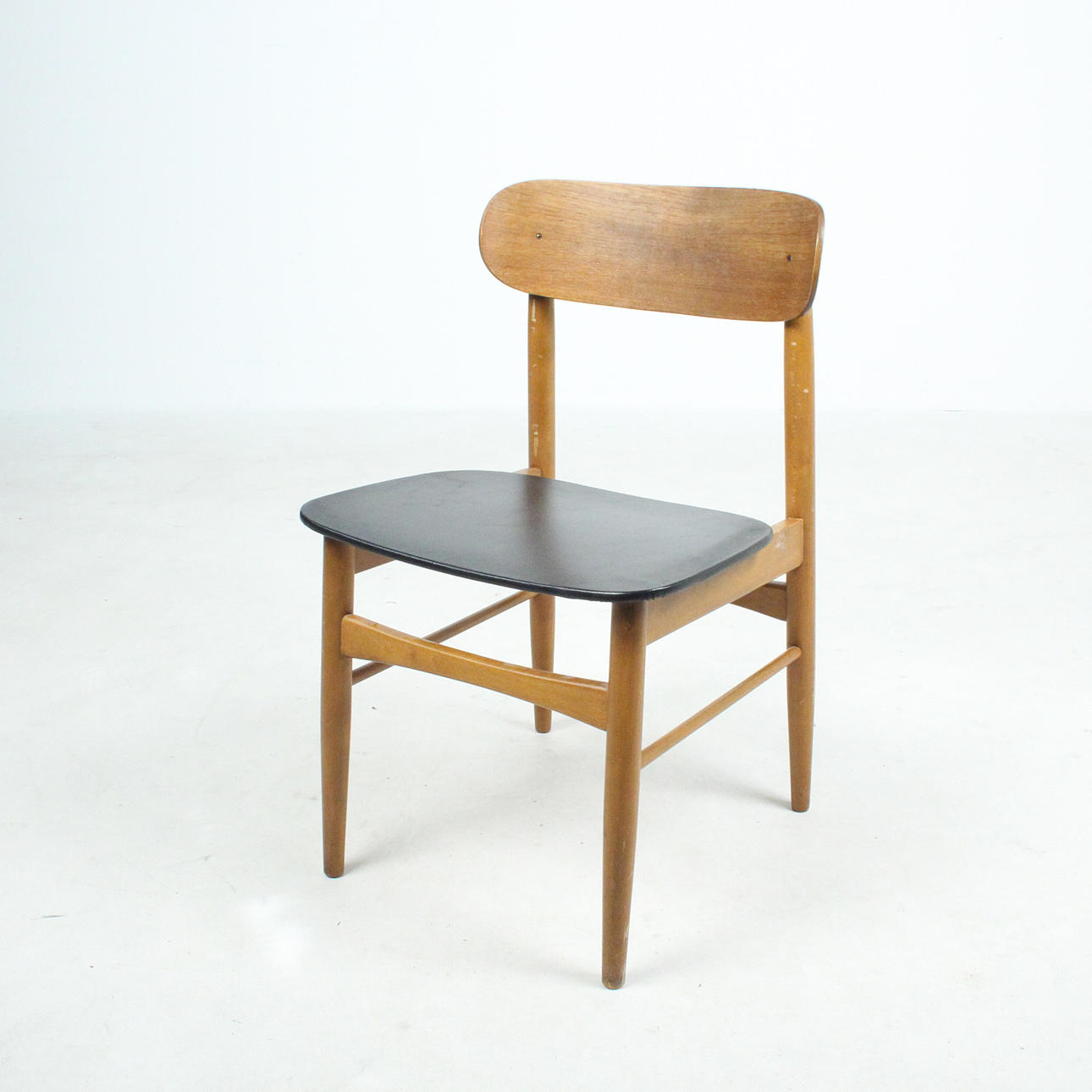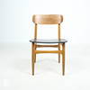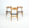 7 x 1960-talet matstolar Massivt träkonstruktion, böjda ryggstöd, säten täckta i svart konstläder.