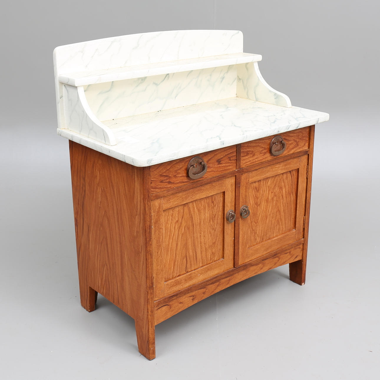 Längd 87, bredd 49, höjd 100 cm. Imiterad sten (målat trä).