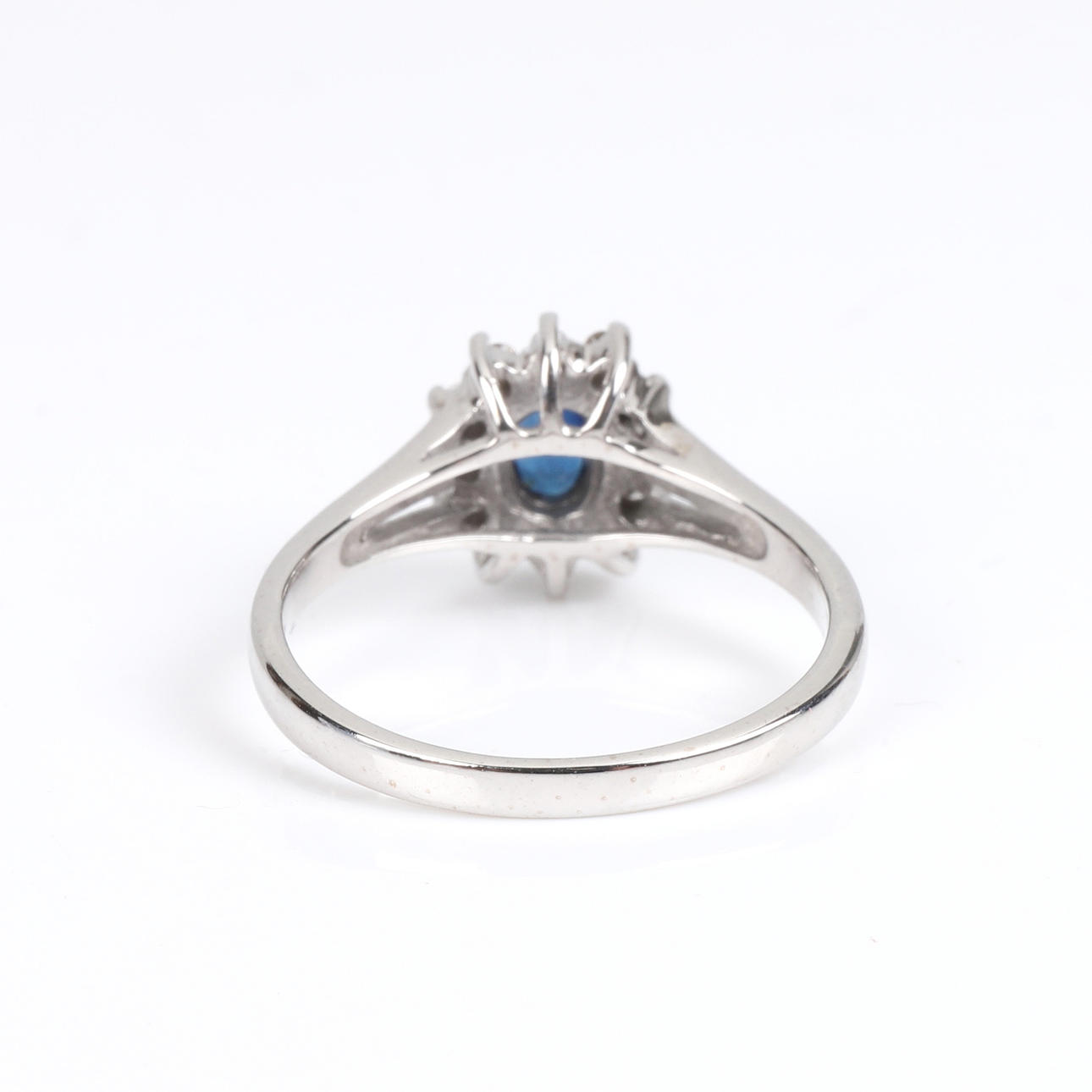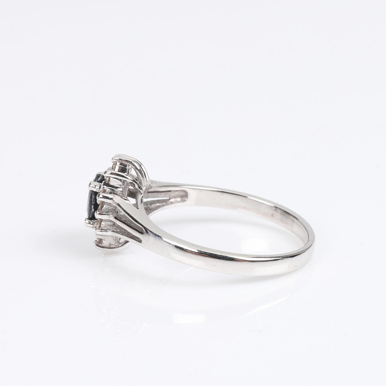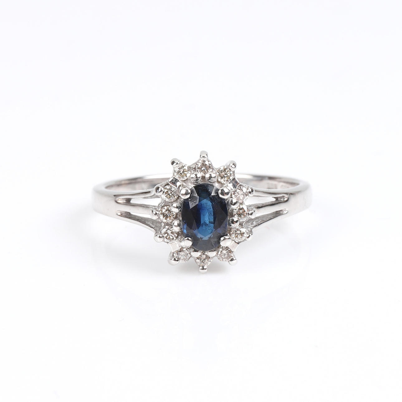 Ring i 14K vitguld med en ovalslipad safir och 12 briljantslipade diamanter