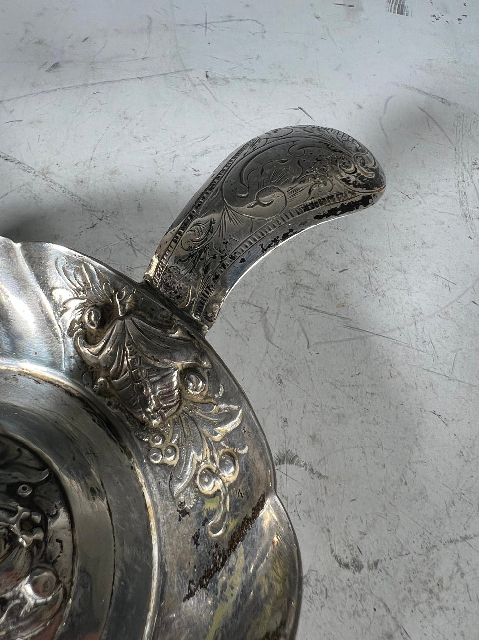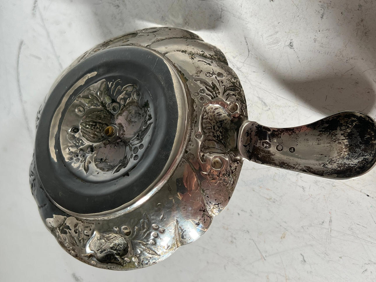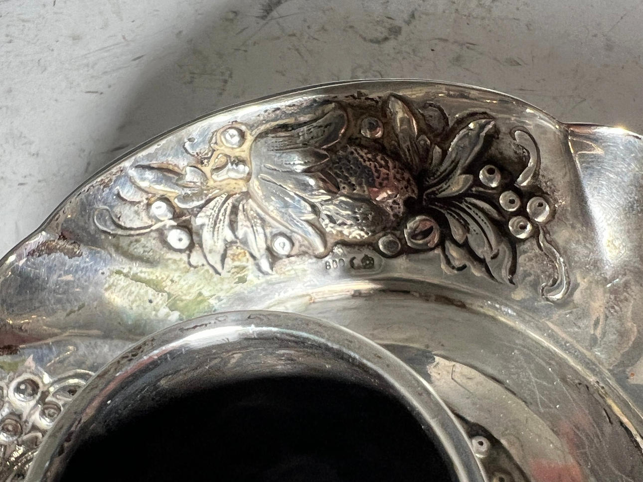 Antik silver ljusstake, stämplad, 800 Med blommig inredning.