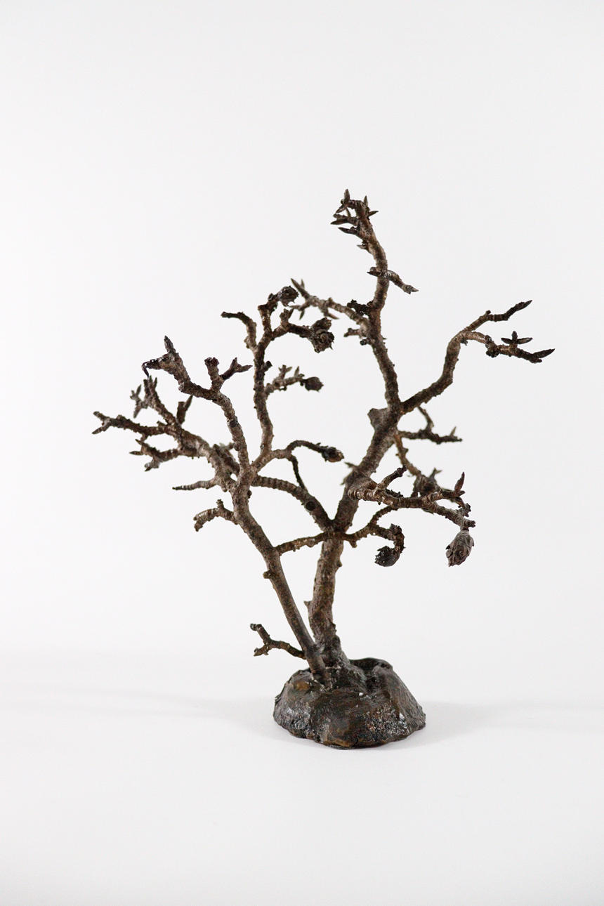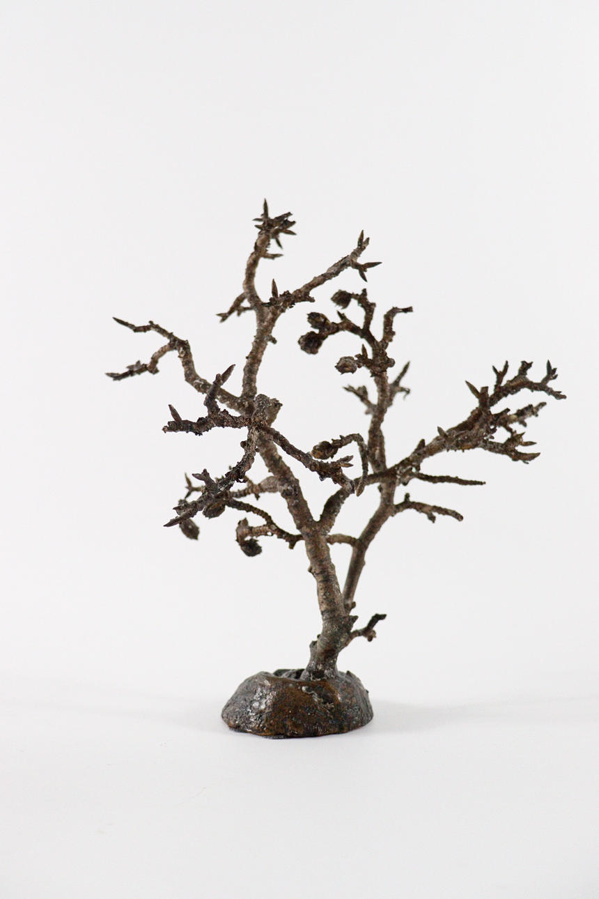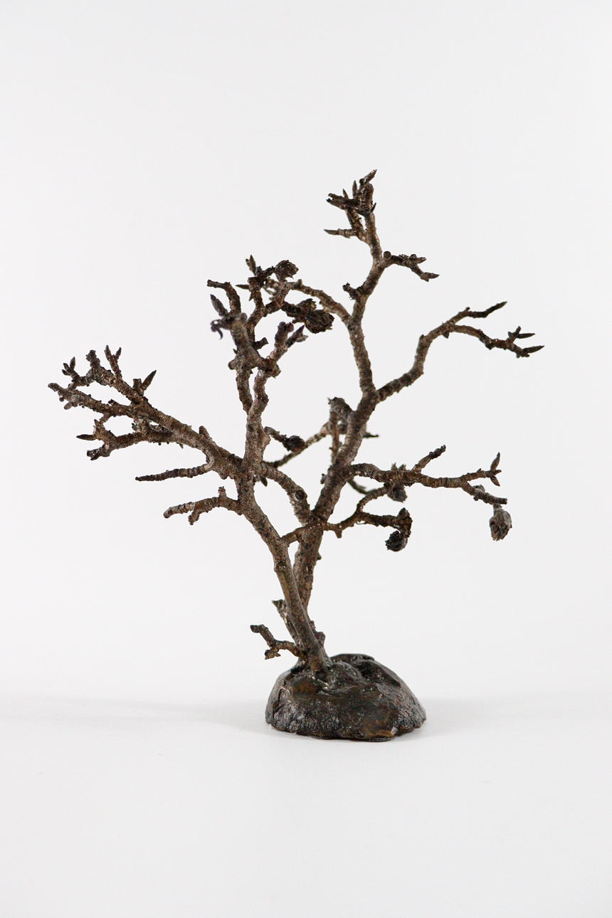 trädskulptur från 1970-talet, helt plastkropp gjord av brons, mörk patina, Mått ca.: h.27 cm, B. 24cm, d. 22cm.