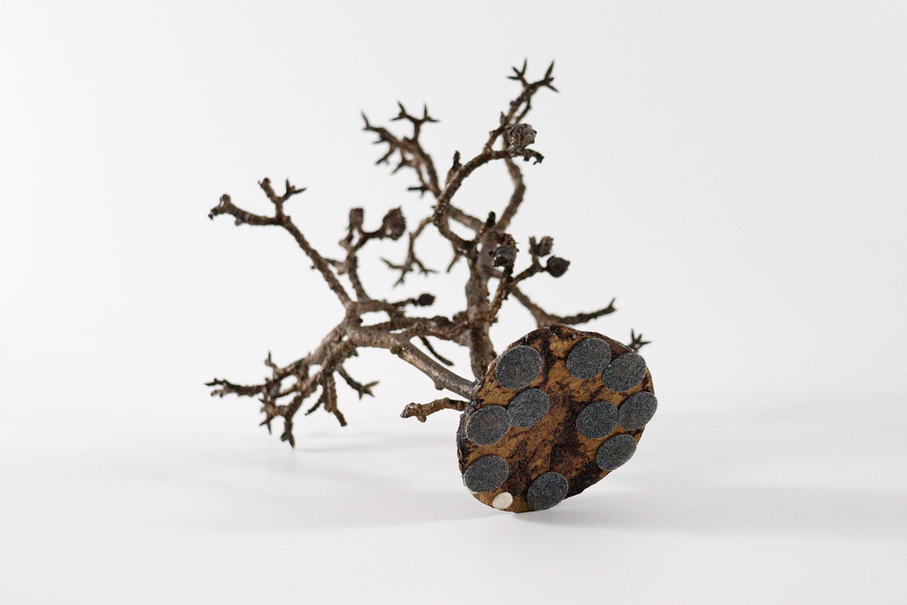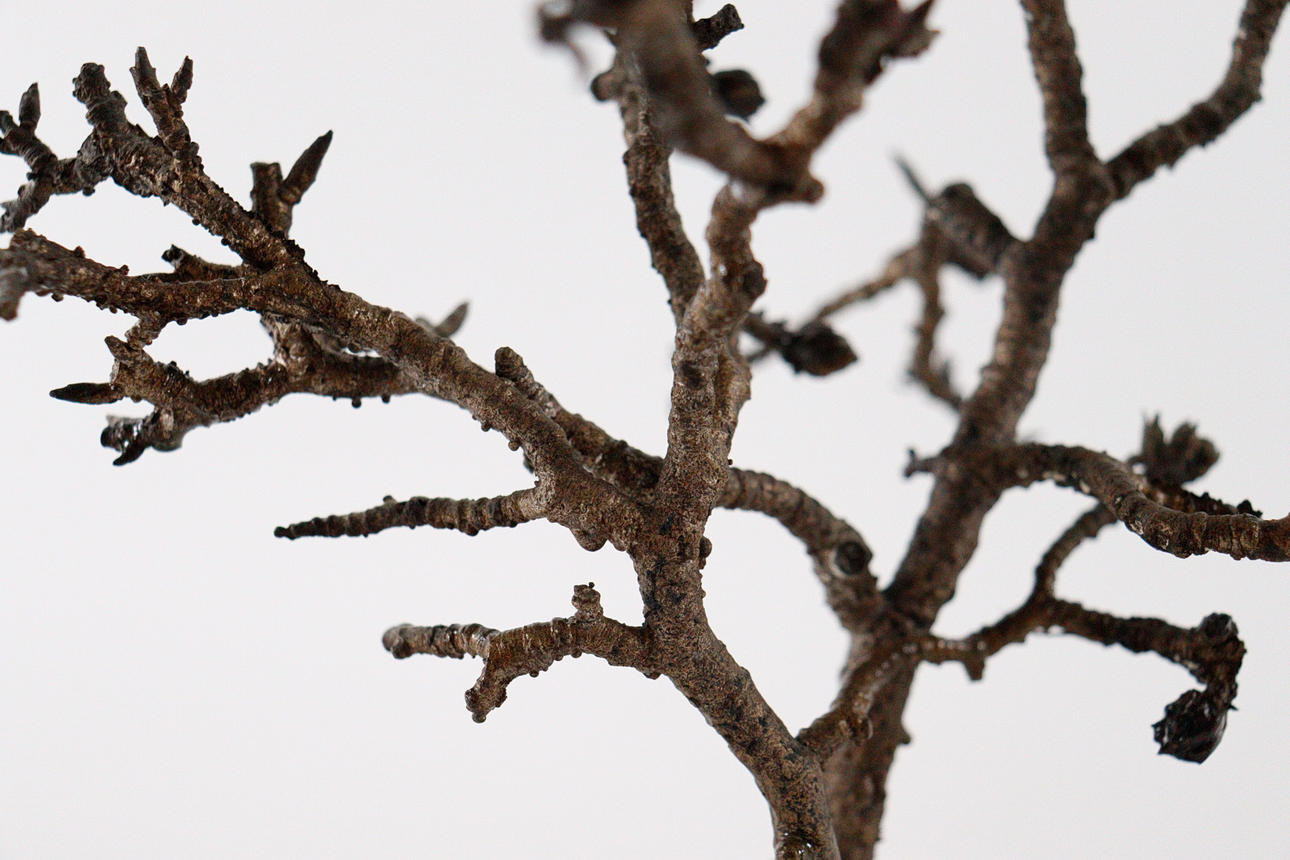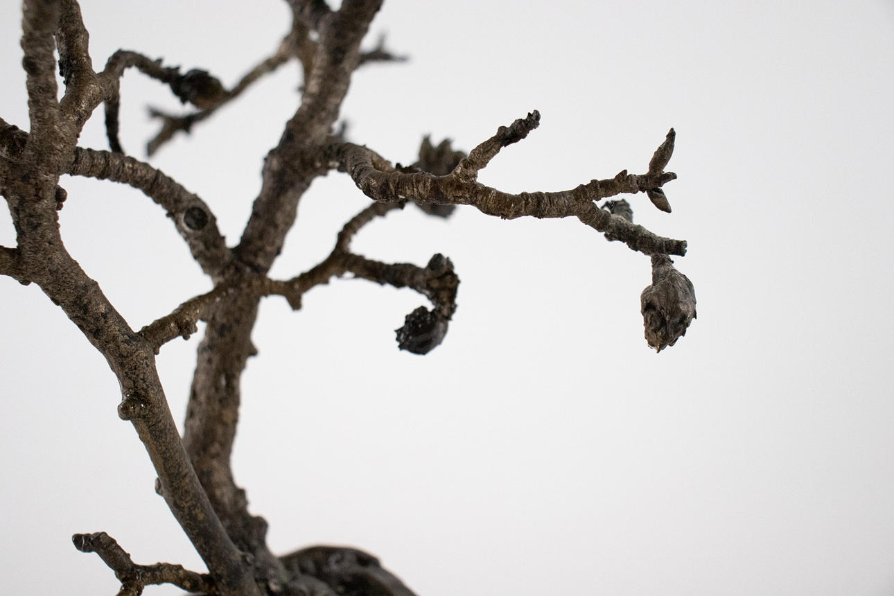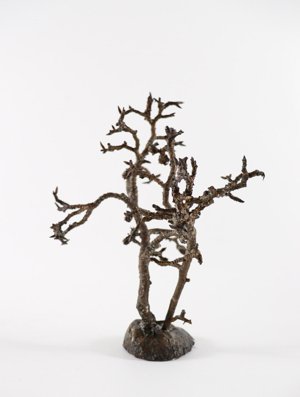 trädskulptur från 1970-talet, helt plastkropp gjord av brons, mörk patina, Mått ca.: h.27 cm, B. 24cm, d. 22cm.