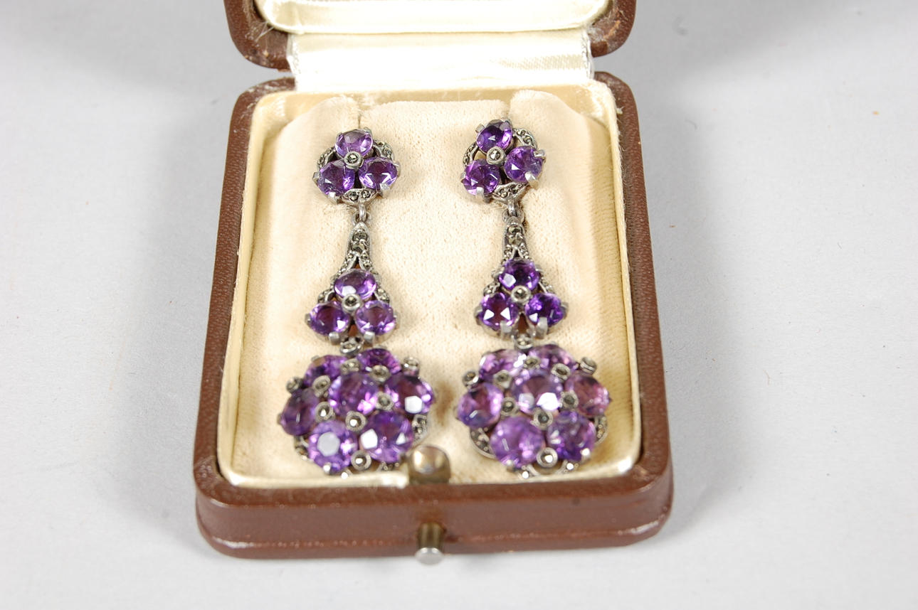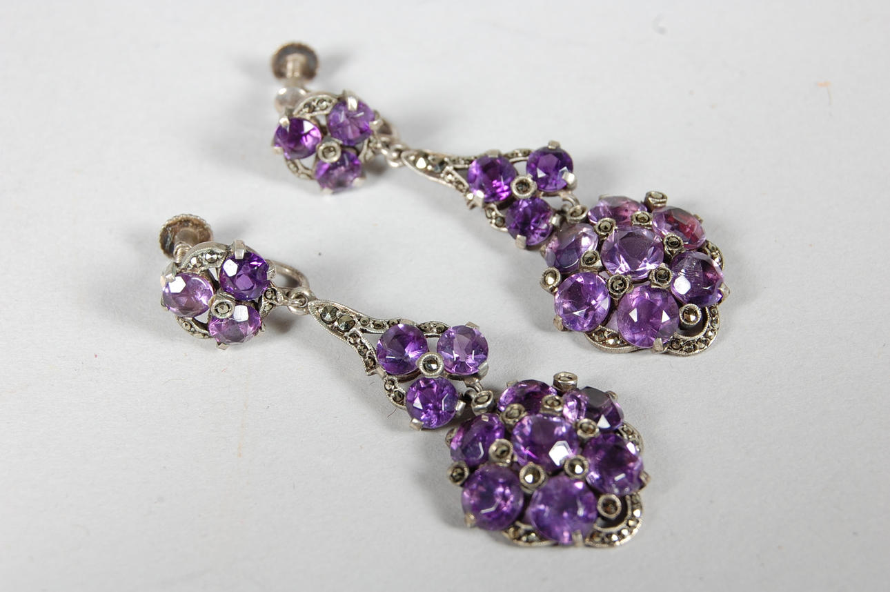 ÖRHÄNGE, silver, ametister, 1920-tal.